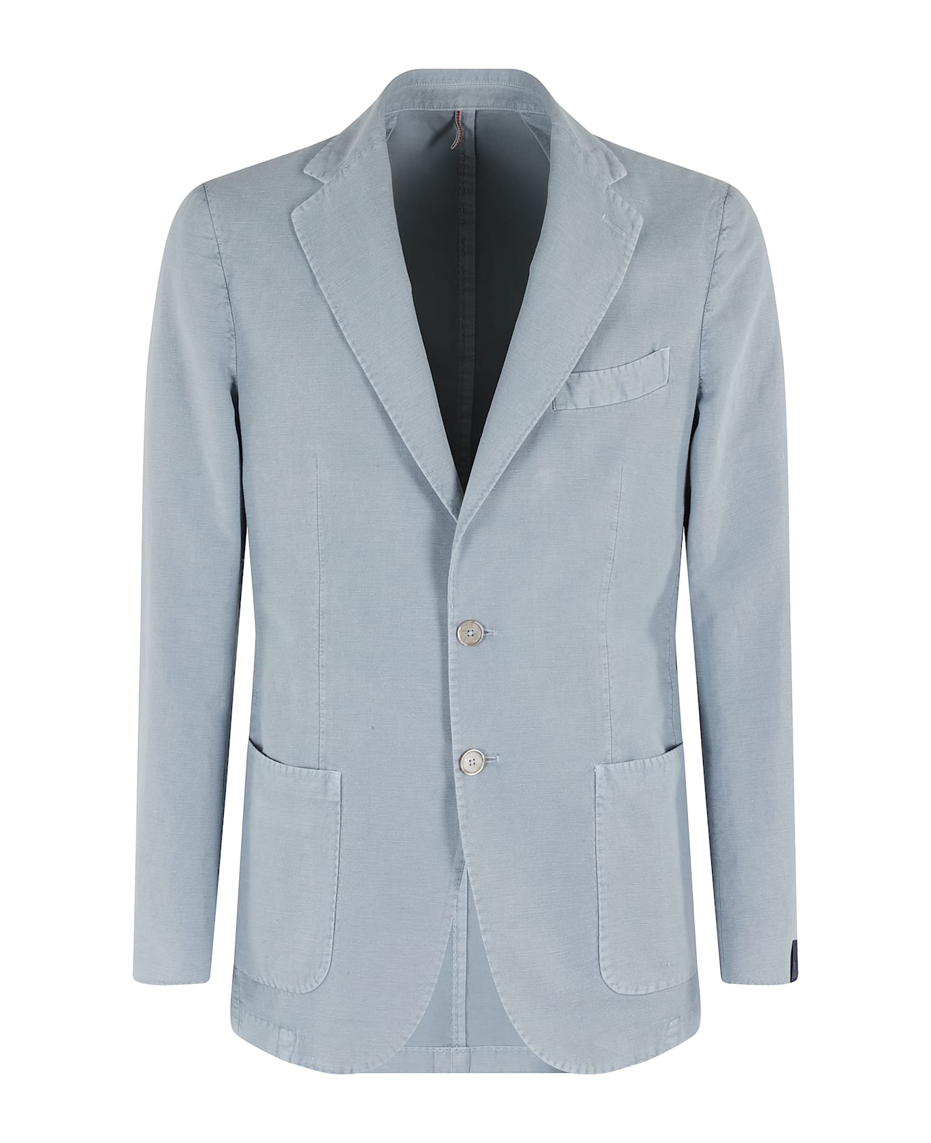 Jacket - Santaniello - Sky color - Cotton weave linen-blend fabric - Lapel neckline - Long sleeve with buttons at hem - Flush chest pocket - Side patch pockets - Single-breasted button closure - Regular fit