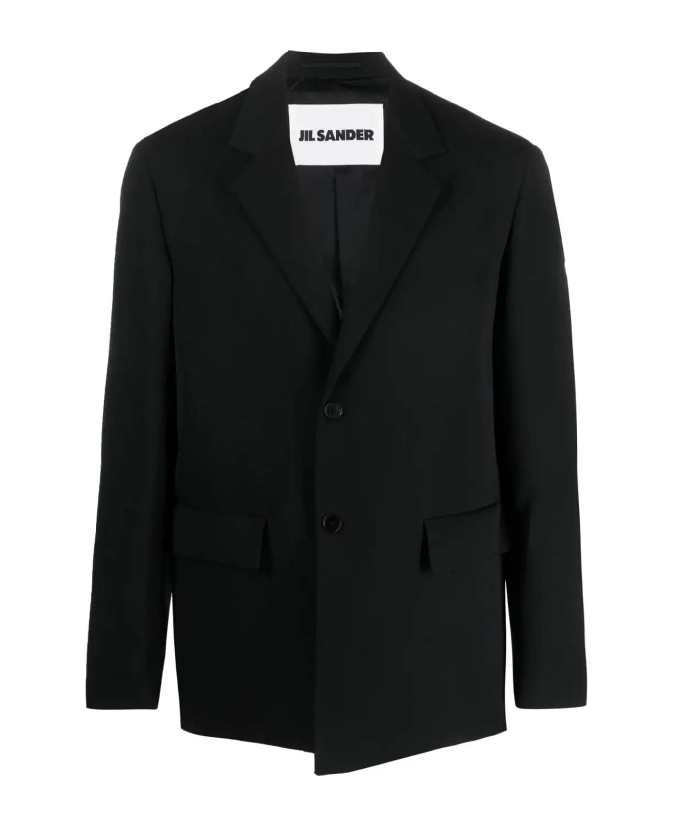 Black wool blazer, notched lapels, front button fastening, long sleeves, buttoned cuffs, two side flap pockets, central rear vent, straight hem Composition: Wool, 100%