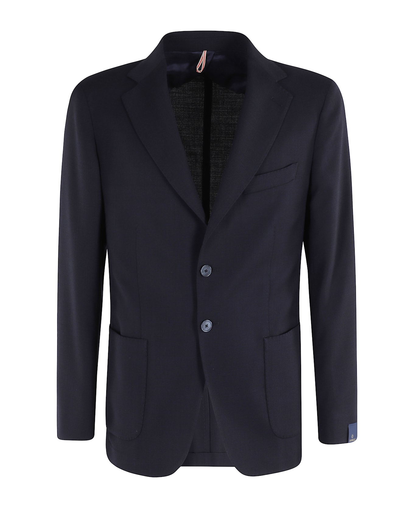 Jacket - Santaniello - Blue color - Stretch hopsack fabric - Unlined - Lapel neckline - Side patch pockets - Single breasted two button closure - Double back slit - Regular fit