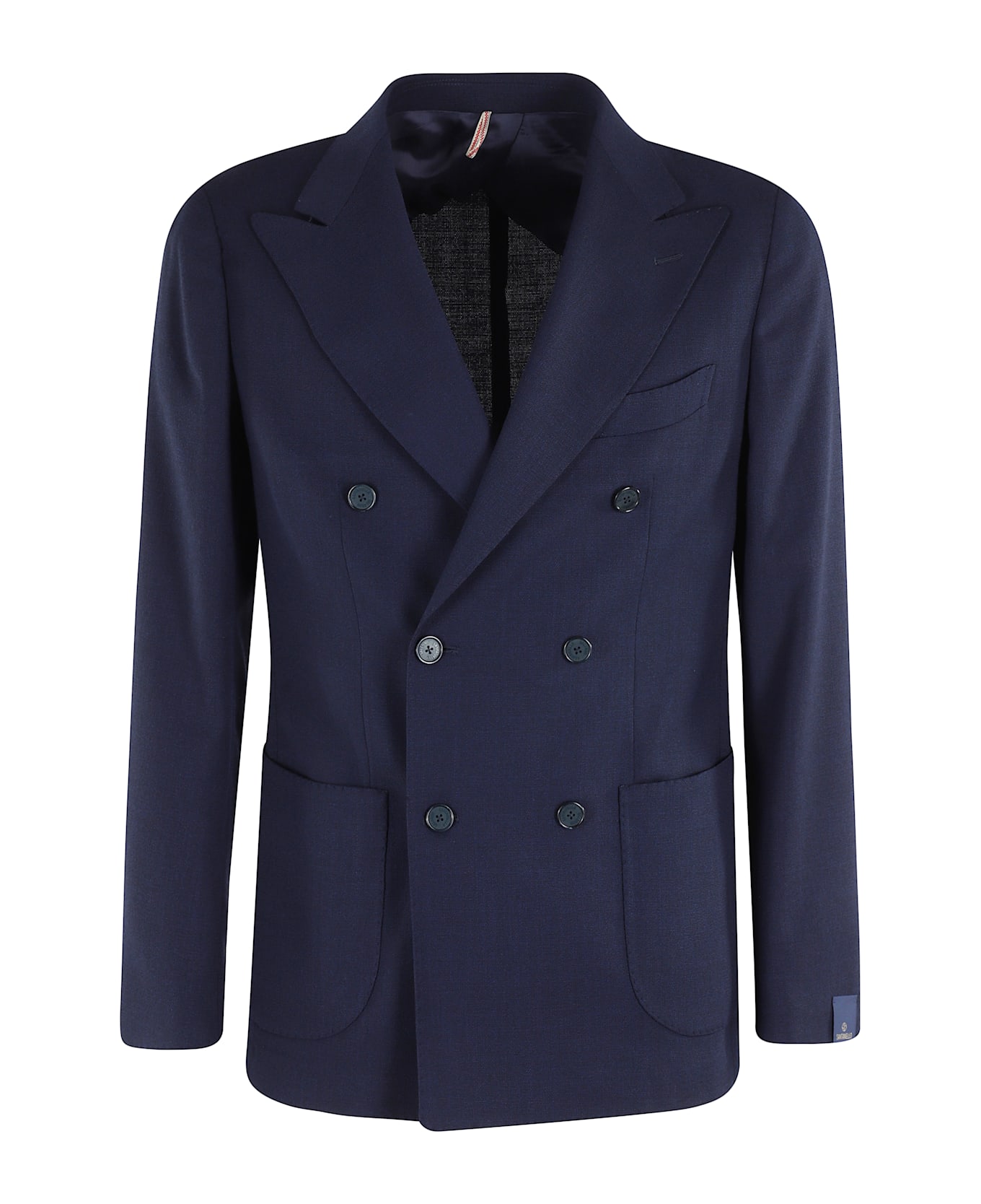 Jacket - Santaniello - Blue color - Stretch hopsack wool-blend fabric - Unlined - Lapel collar - Patch side pockets - Double-breasted button closure - Double back slit - Regular fit