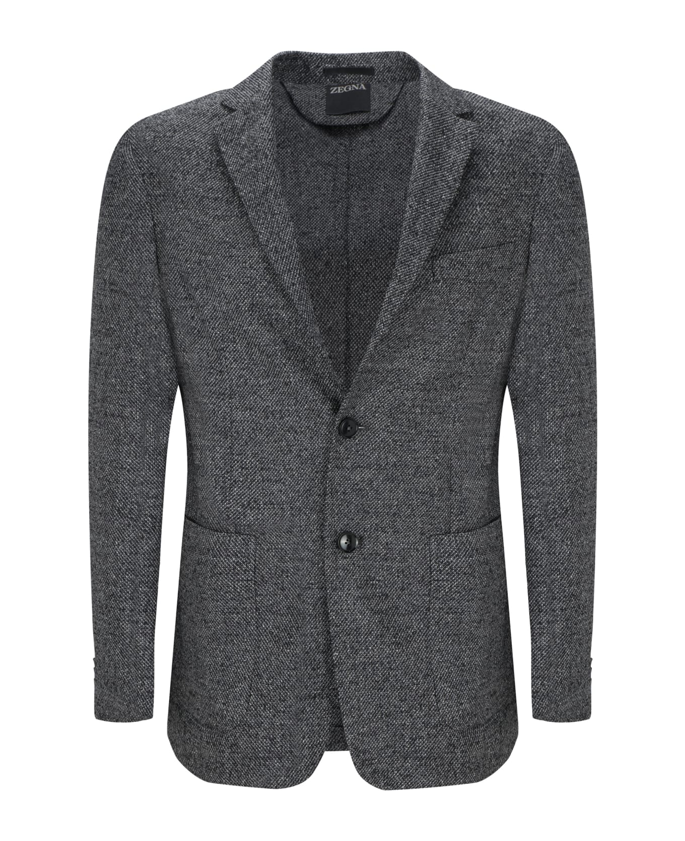 Wool blazer jacket by zegna, contrasting front button closure, classic lapels, two front patch pockets, one front patch pocket, back vent, knit design, mélange pattern, regular fit. Composition: 14% % Other Fibres, 6% % Nylon, 80% % Wool