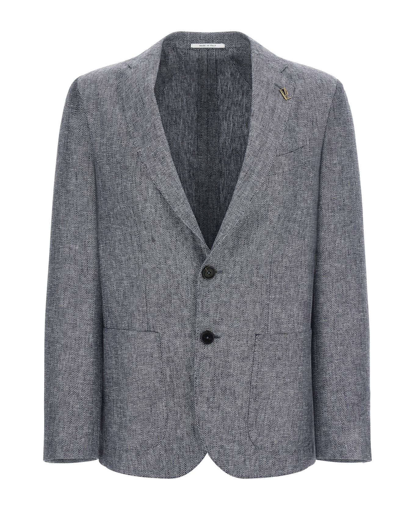 'Brera' single-breasted blazer in linen blend with chevron pattern, front button closure, mirror lapels with removable metal pin, breast pocket, patch pockets, unlined, three inner pockets, cuffs with opening buttonholes, back vents.