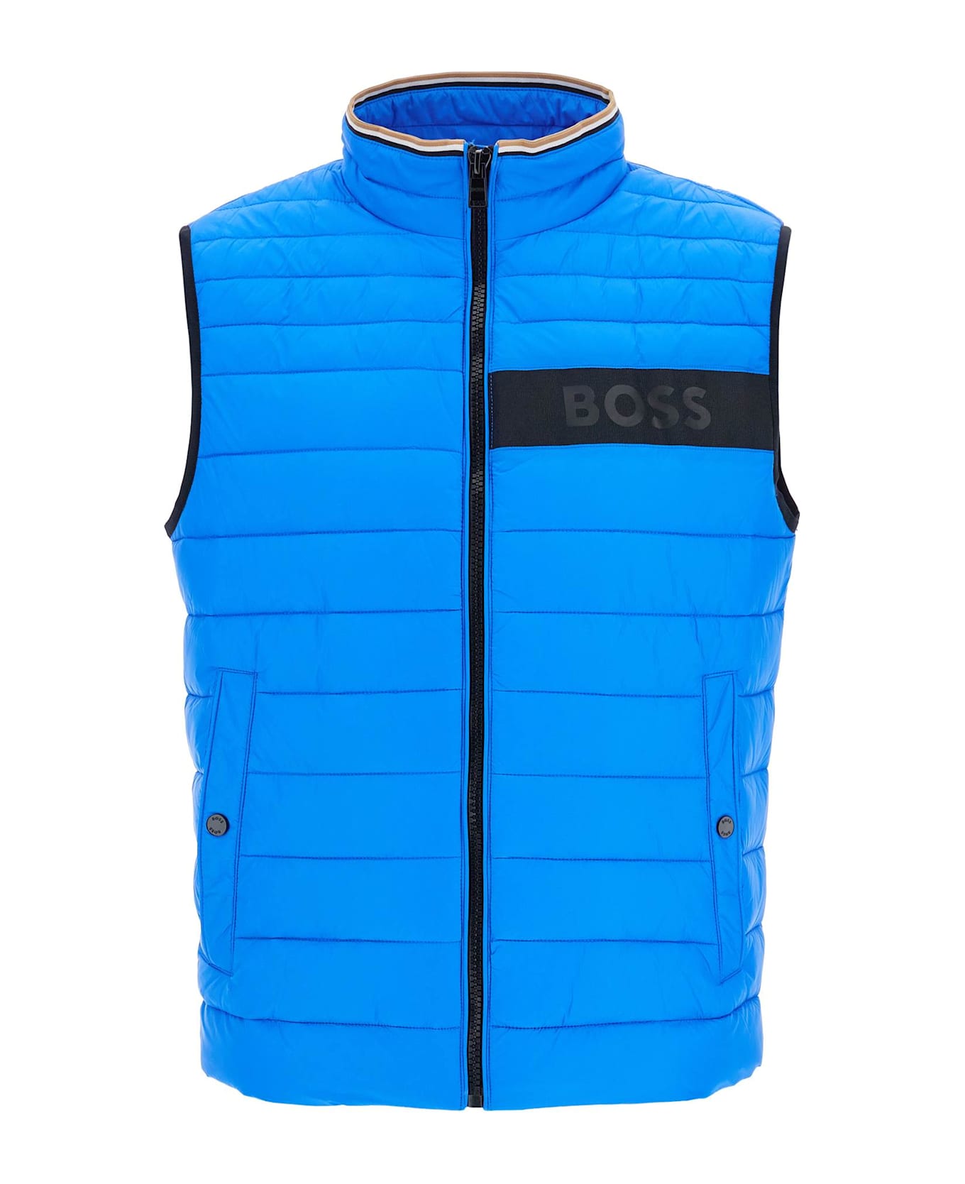 The BOSS gilet in bright blue offers modern elegance and comfort. Made from polyester with a quilted design, high collar, and front zip. Perfect for men's fashion in the autumn-winter season, versatile and refined.