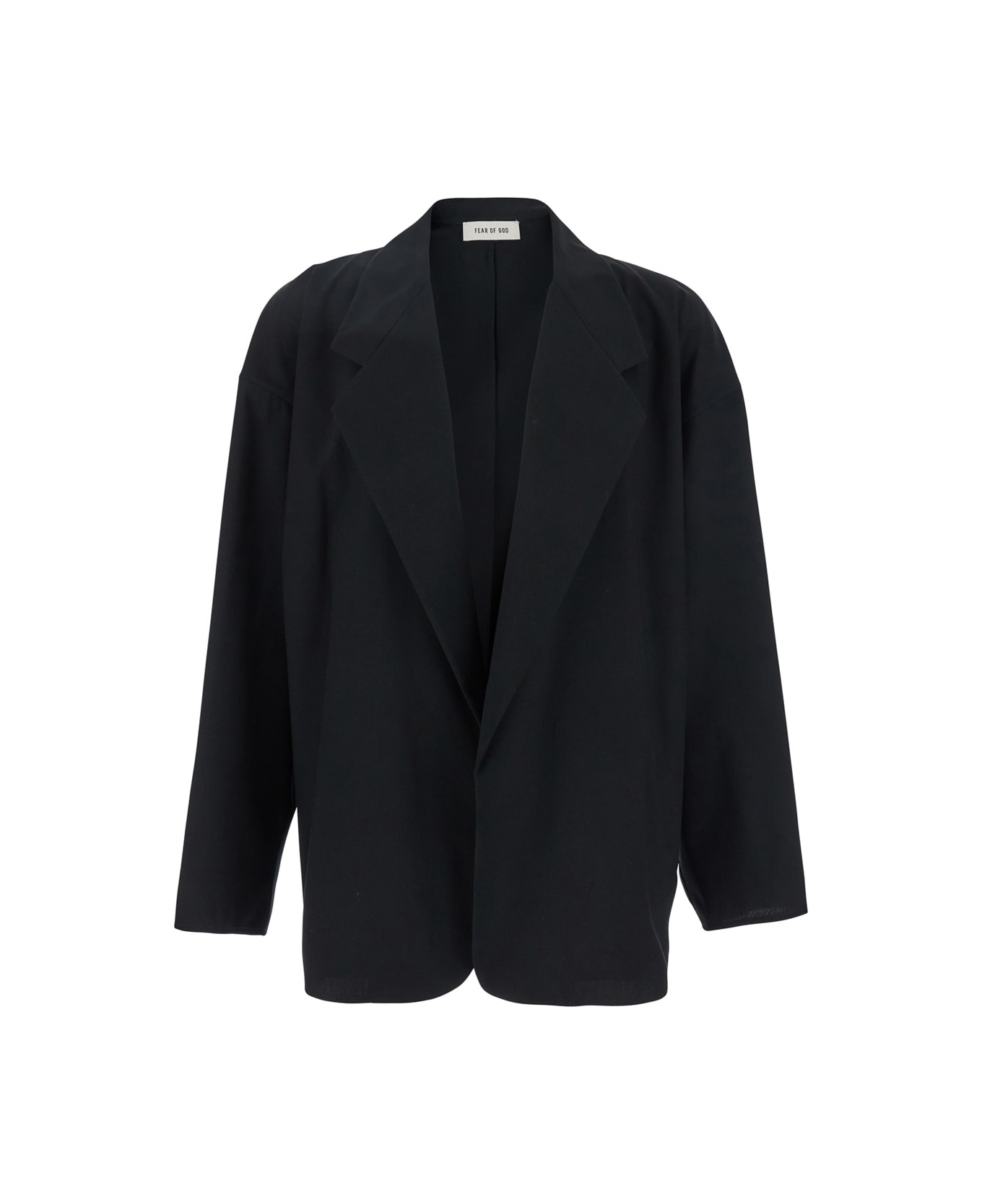 Jacket Black Wide neckline on the front Long sleeves Dropped shoulders Wide classic lapels Applique logo on the back Cuffs with slits Cotton and wool blend Oversized fit