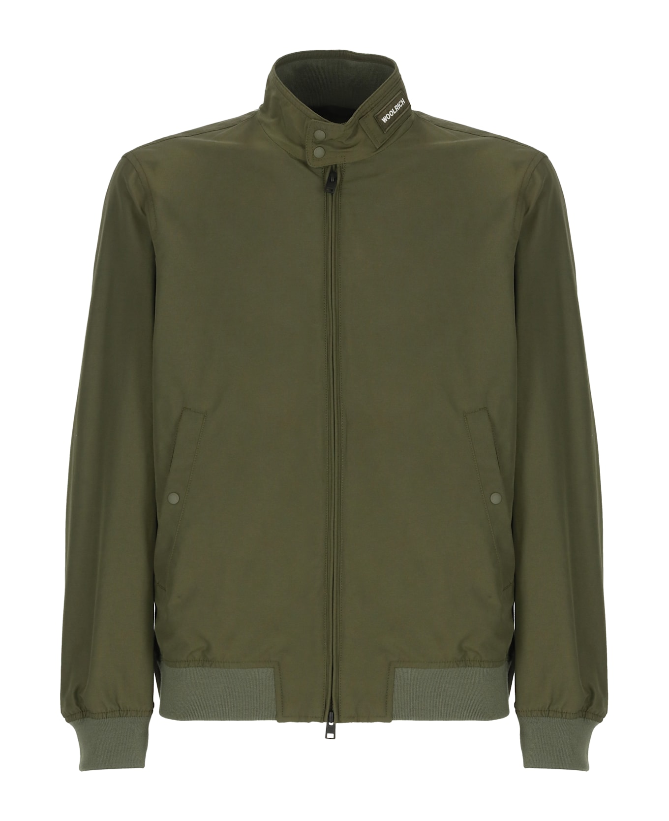 - Green Woolrich cotton blend bomber for man - High neck with buttons - Long sleeves - Two side pockets with button - Front zip fastening - Elastic ribbed trims