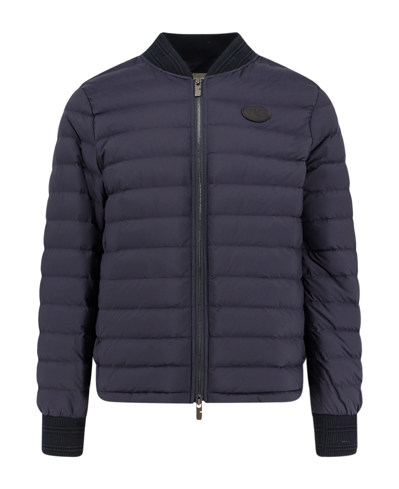 Zip closure with double slider Zip welt pockets Ribbed knitted profiles EKD leather patch 100% Polyamide Padding: 90% down 10% feather SKU: 8110273A1222