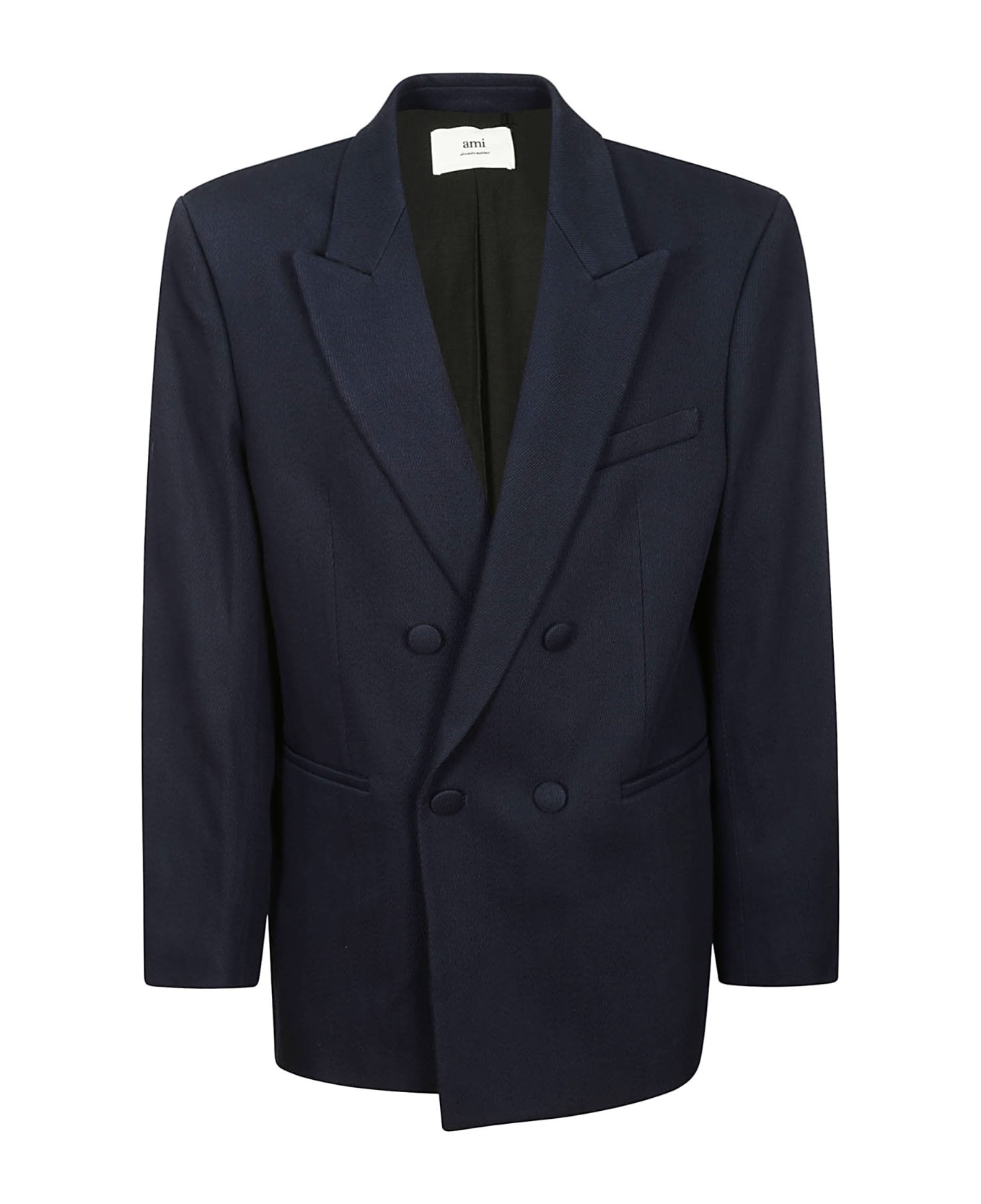 AMI Blue cotton jacket, tuxedo model, lined buttons, peak lapels, welt pockets, breast pocket, buttoned cuffs. Composition: 100% Cotton