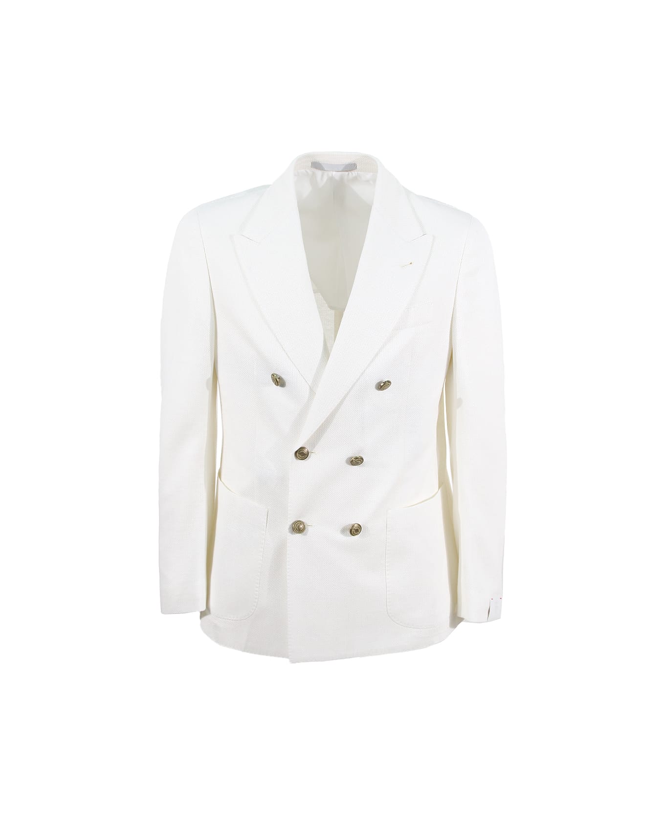 6-button closure, peak lapels, welt pocket on the chest, 2 side patch pockets, double vent on the back. Colour: White. Composition: 59% Linen, 41% Cotton. Made in Italy