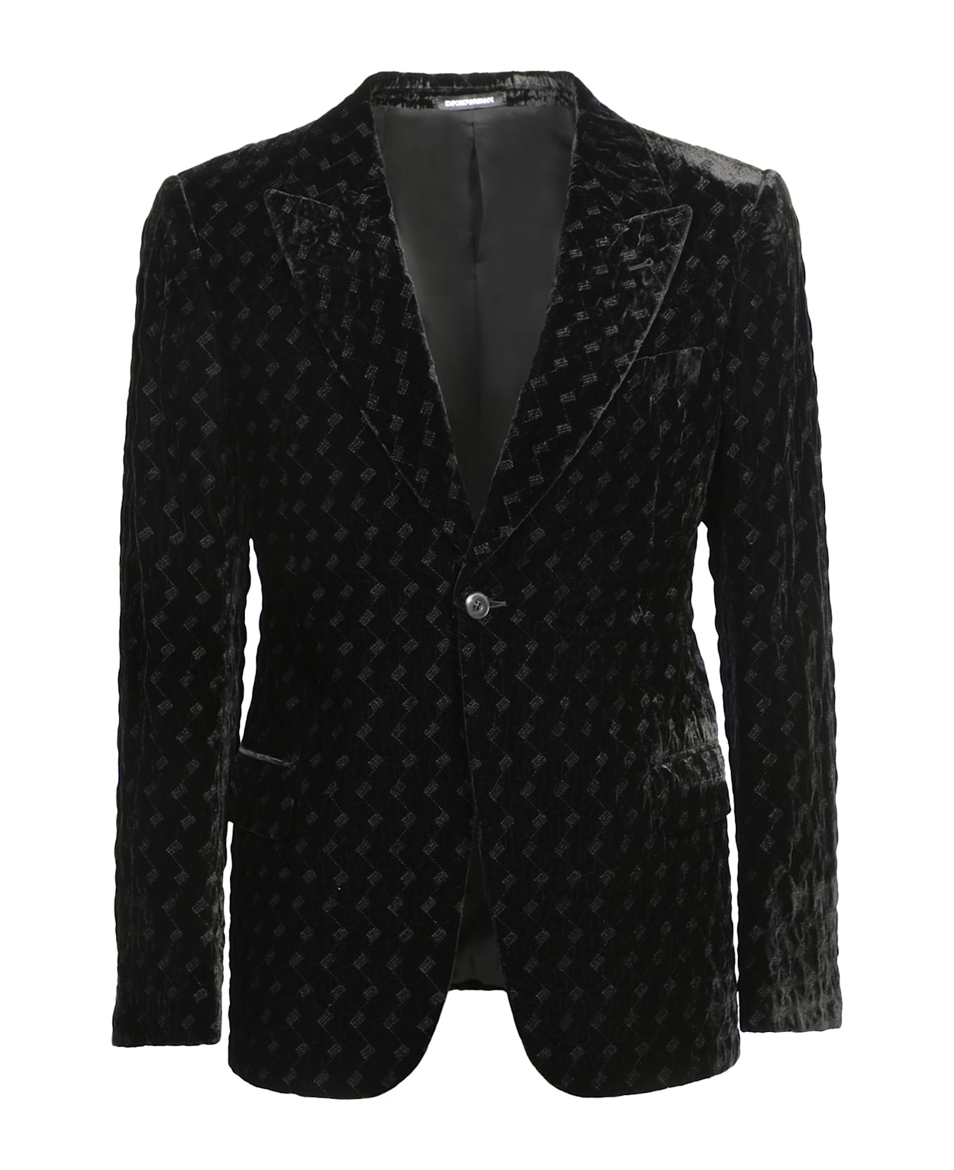 Exclusive black velvet jacket by Emporio Armani, featuring elegant embroidery and a classic cut that enhances any silhouette. Composition: 75% Viscose, 25% Polyamide