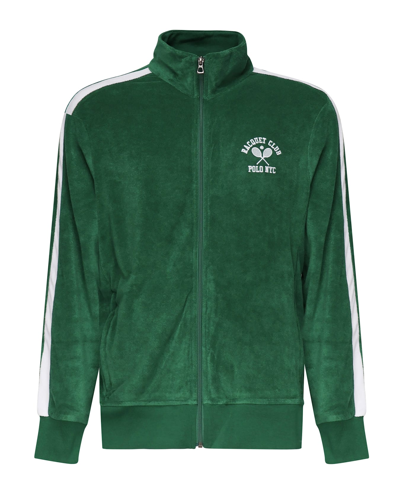 -Made from a lightweight cotton blend -Long sleeves with ribbed cuffs -Embroidery on the left chest -Two front zip pockets at the waist -Ribbed hem -Size shown in photo is M -Color: Tennis Green