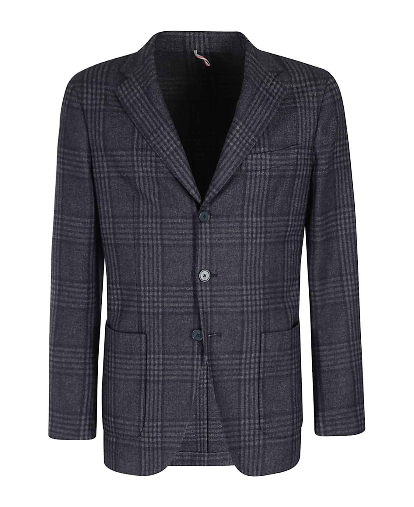 Jacket - Santaniello - Blue color - Wool-blend fabric with check pattern - Lapel neckline - Long sleeve with buttons at hem - Flush chest pocket - Patch side patch pockets - Single-breasted button closure - Double back slit