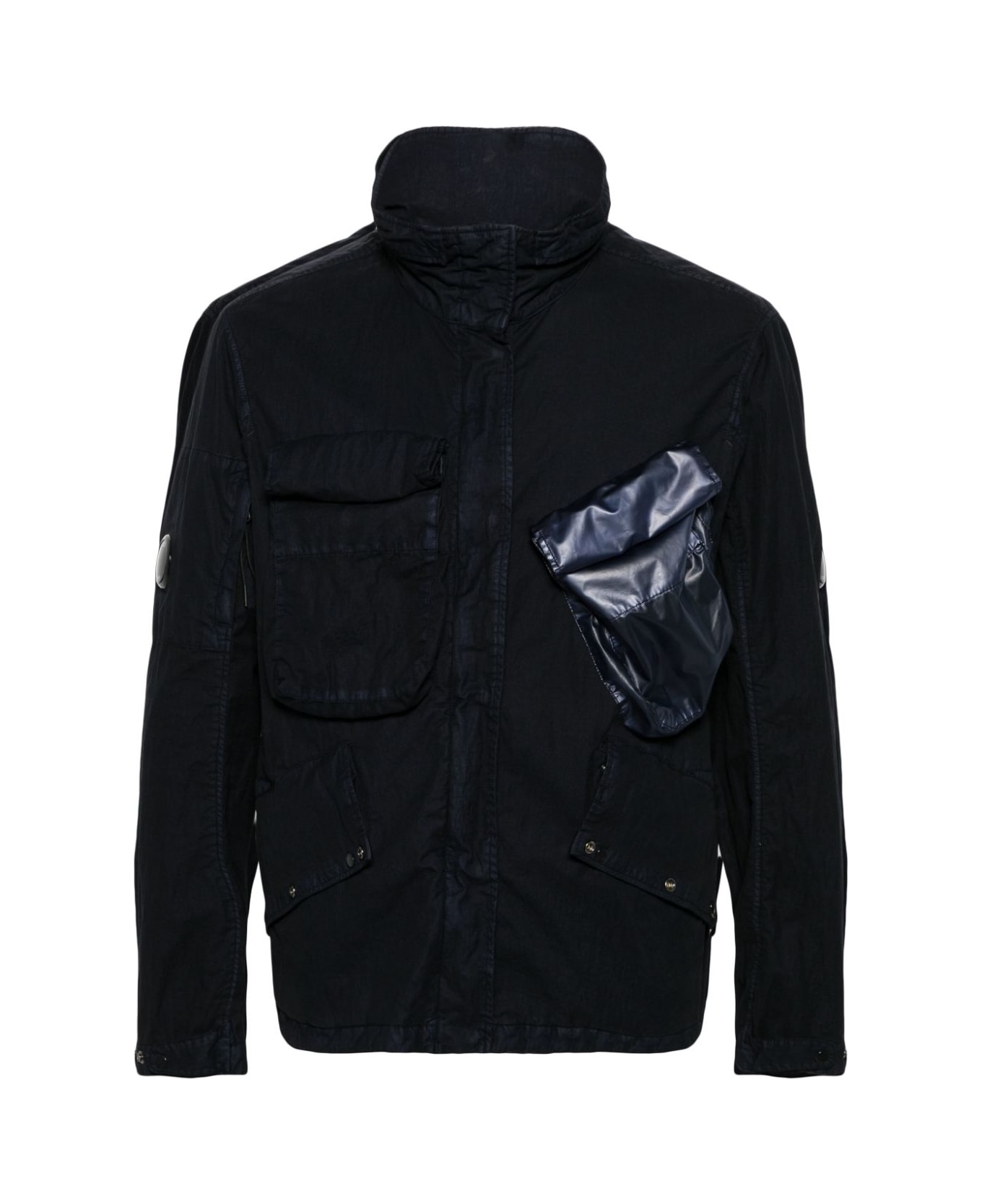 navy blue cotton blend 50 Fili-PiUM blend coated finish water-resistant garment dyed signature Lens detail concealed hood high neck front two-way zip fastening branded zip puller concealed front press-stud fastening long sleeves press-stud fastening cuffs drawstring hem multiple cargo pockets no lining sleeve zip pocket