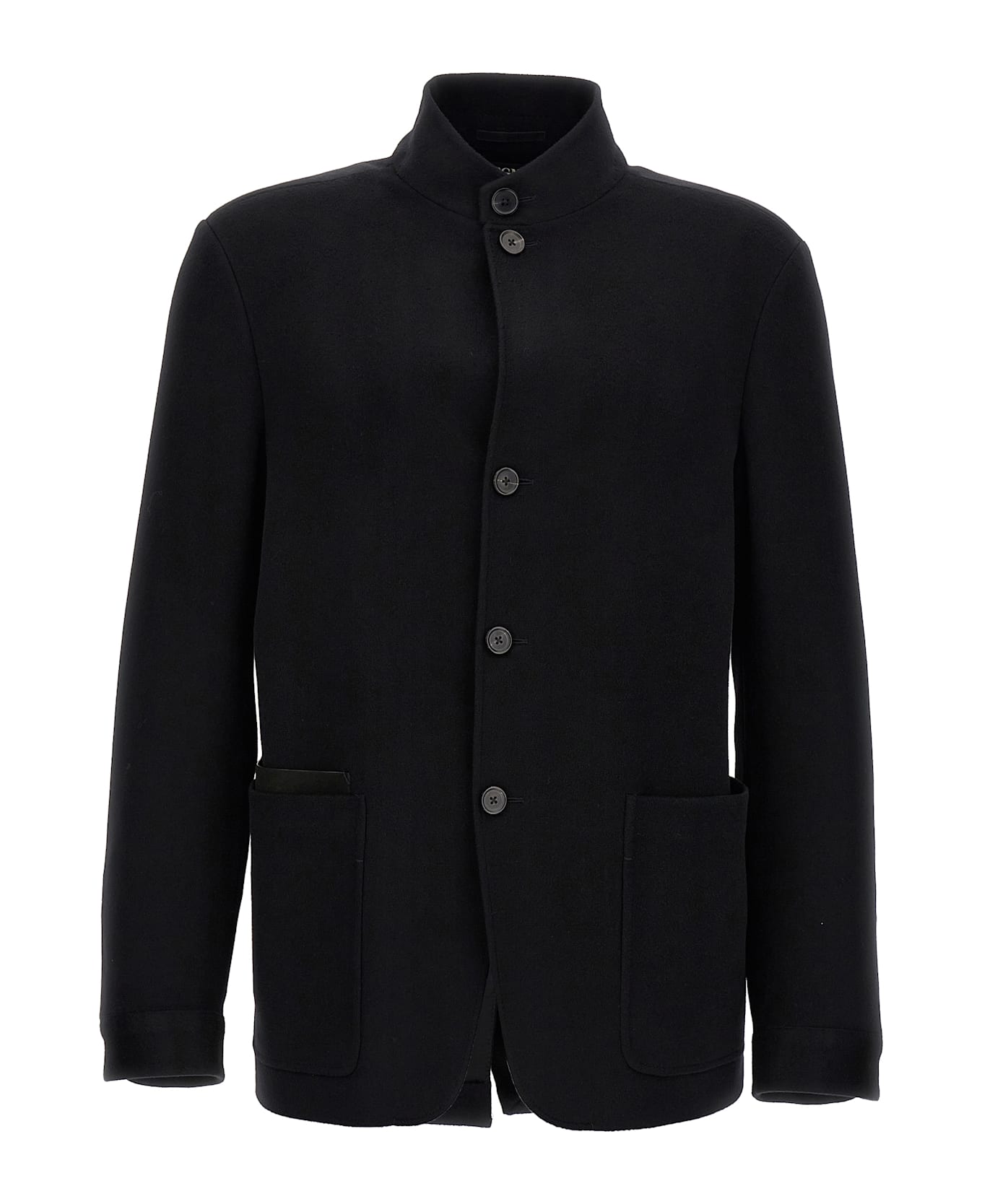 'Il Conte' jacket in double cashmere fabric with button closure, patch pockets, leather pocket detail, long sleeves. Composition: 100% cashmere