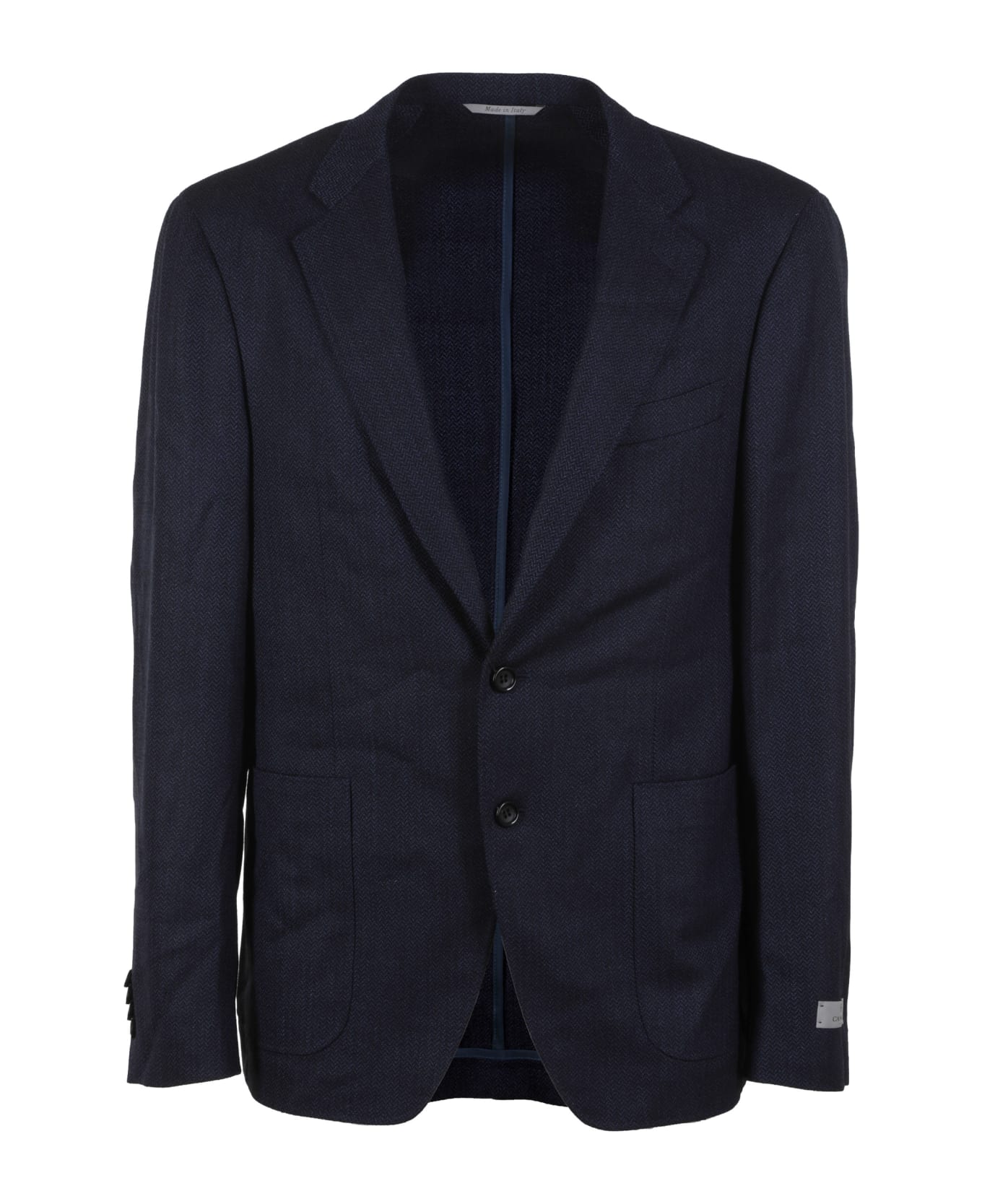 Canali Blue wool jacket, two button closure, front patch pockets, buttoned cuffs, side slits. Composition: 94% Wool, 3% Pa, 3% Ea