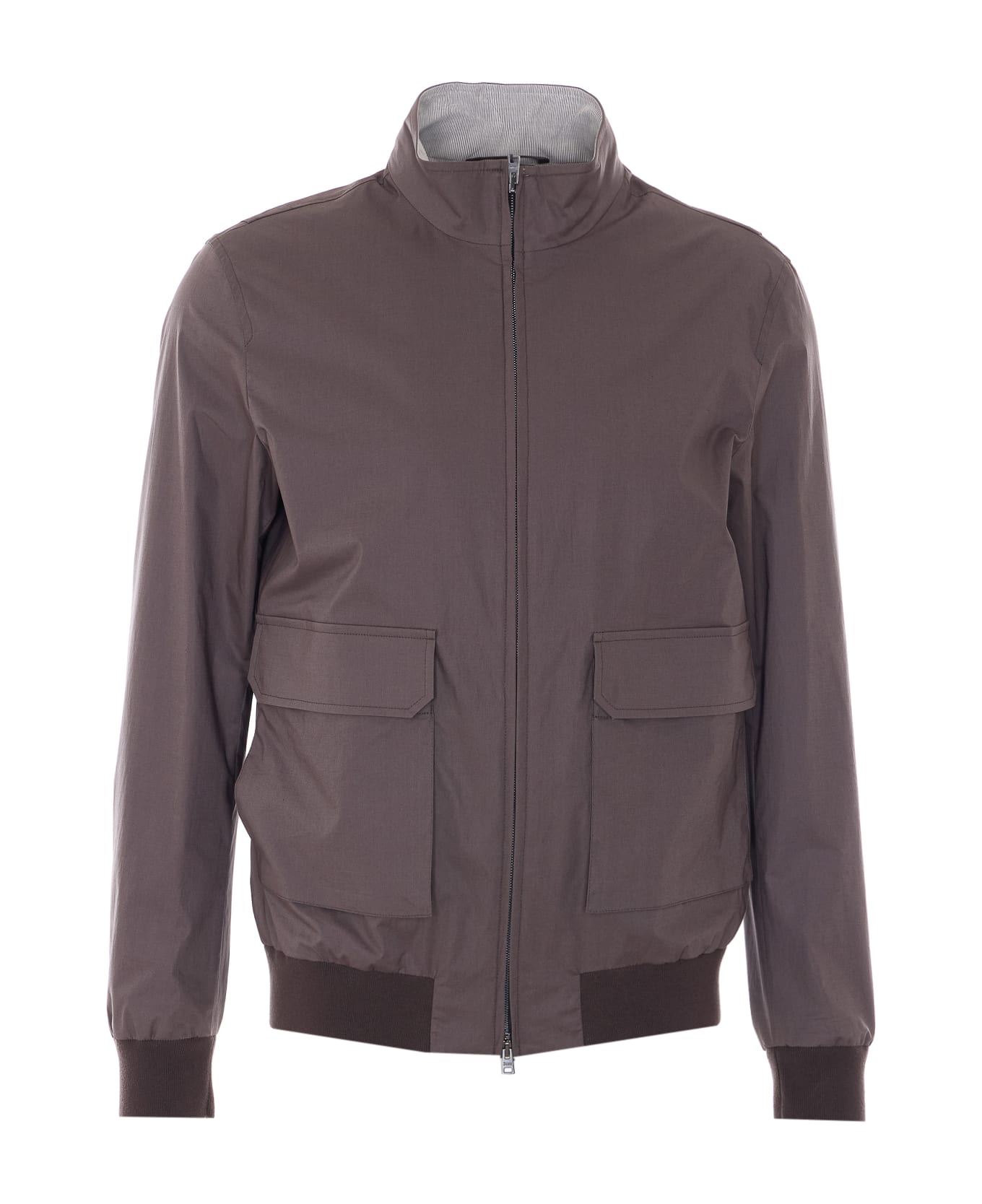 Herno brown jacket with frontal zip closure, high neck, long sleeves, frontal pocket with button closure Composition: 96% Cotton, 4% Elastane, 76% Cotton, 24% Modal, 100% Polyester