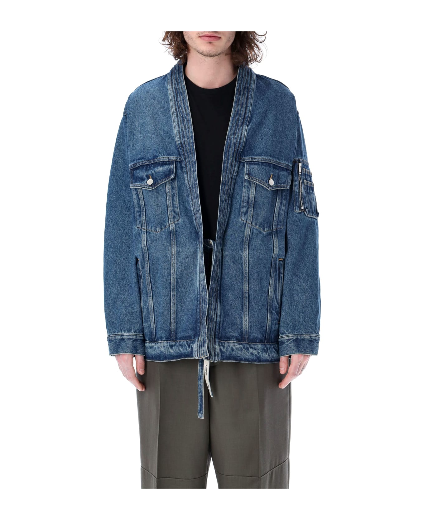 Cotton Kimono Denim Jacket By Ambush. Featuring: Front Flap Buttoned Pockets Zip Pocket At Left Sleeve Side Pockets Long Sleeves Button Cuffs Ambush® Logo Embossed On The Back Label The Model Is 1,90 M Tall And He's Wearing Size L