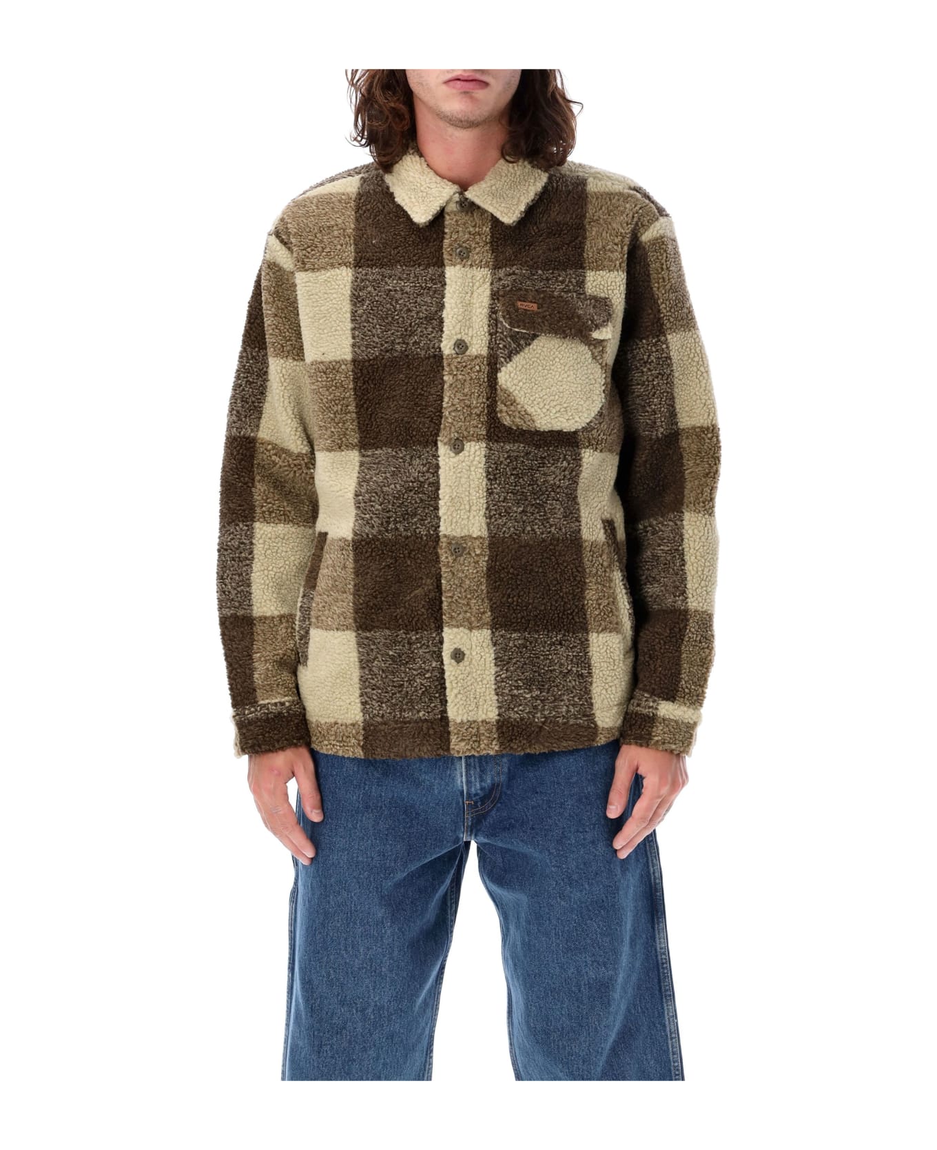 Lockheart Zip-up Sherpa Fleece By Rvca. Featuring: Classic Collar Long Sleeves Button Closure At Front And Cuffs Chest Pocket At Front Welt Pockets At Side Rvca Patch On Wearers Left Side Curved Hem Relaxed Fit Model Is 1,90 M Tall And He Is Wearing Size L