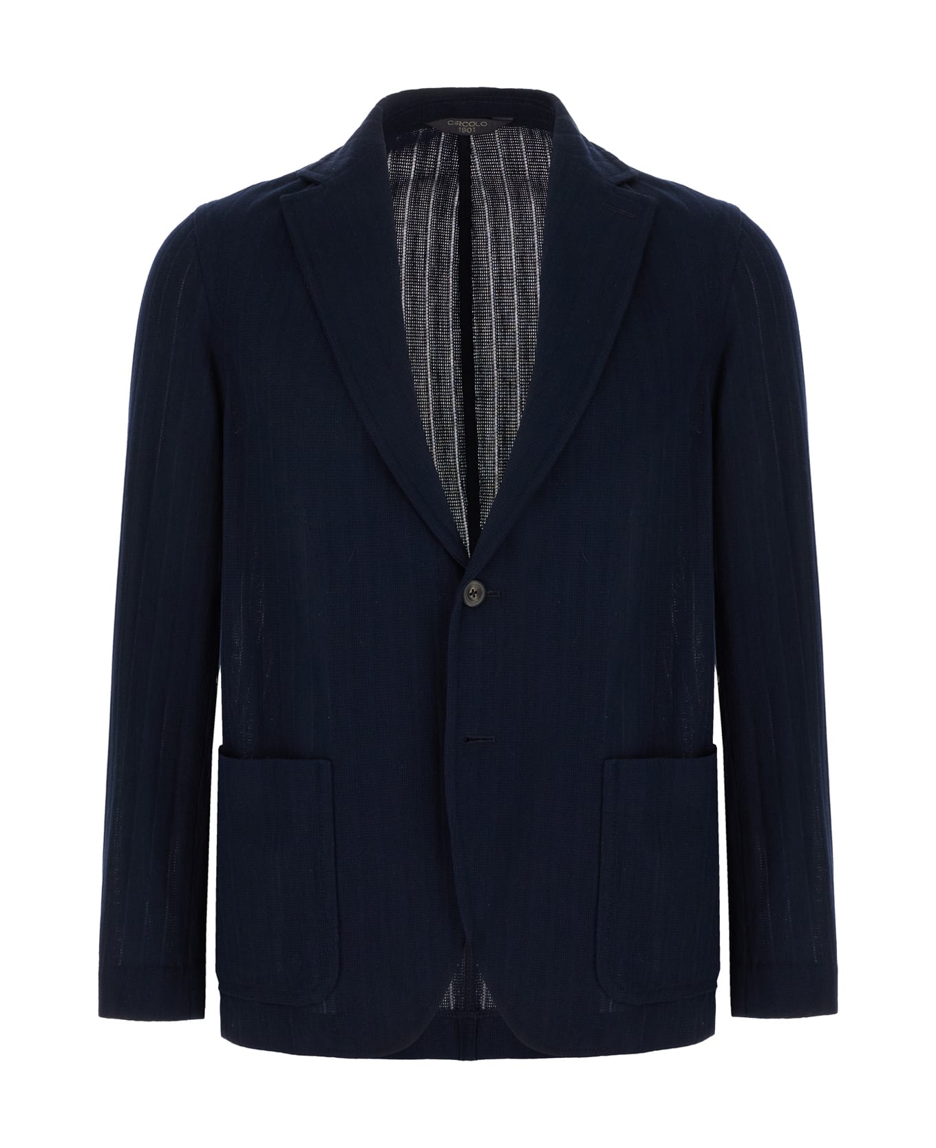 Blazer realized in ribbed pure cotton characterized by notch lapels. -Single-breasted closure by two buttons -Two patch pockets at the front -Unlined inter with two patch pockets