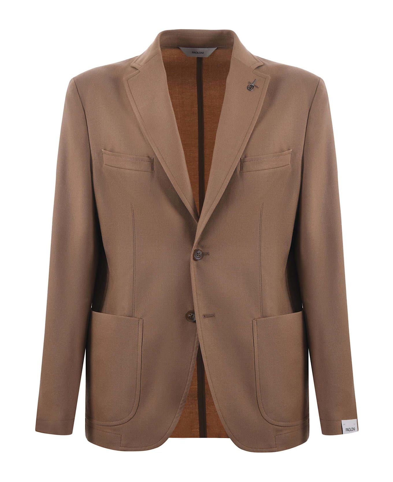 Paoloni jacket in stretch wool. Classic lapel. Closure with 2 buttons. Pocket. Patch pockets. Double vent on the back. Unlined and deconstructed. Size in photo 48 99% virgin wool, 1% elastane