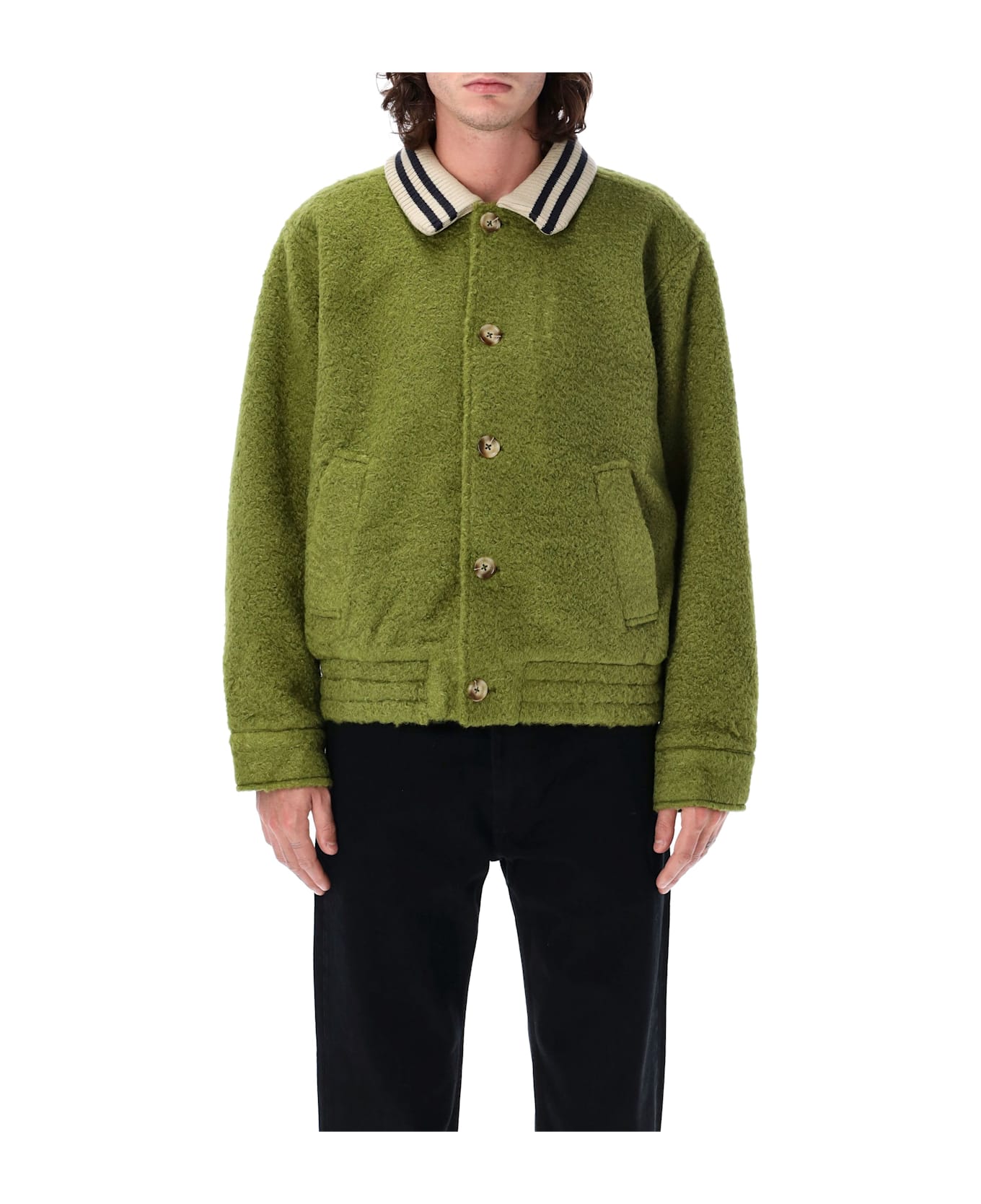 Saunders Blouson Jacket By Obey. Featuring: Knit Striped Point Collar Buttons Closure Button Cuffs Front Welt Pockets Obey Flag Label Self Encased Elastic Hem Fully Lined Model Is 1,90 M And Wears Size L