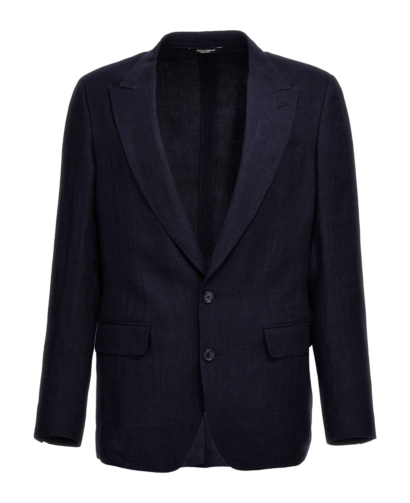 Slim-fit, single-breasted 'Sicilia' blazer with two-button closure, flap pockets and peak lapels. Model unlined. Composition: 89% linen, 11% cotton