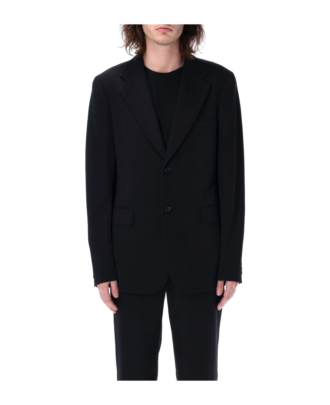 Wool Single Breasted Blazer By Comme Des Garçons Homme Plus. Featuring: Lapel Collar Two Buttons Closure Chest Pocket Front Flap Pockets Three Button Cuffs Rear Central Vent The Model Is 1,90 M Tall And He's Wearing Size Xl