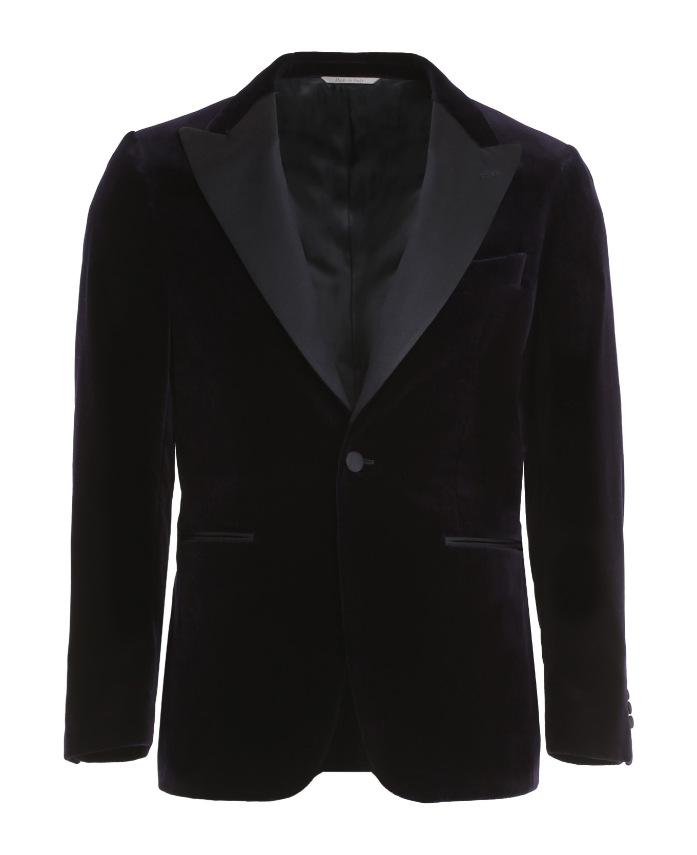 Satin lapel collar two front pockets and chest pocket padded shoulders hem with double back slit 100% cotton Composition: 100% % Cotton