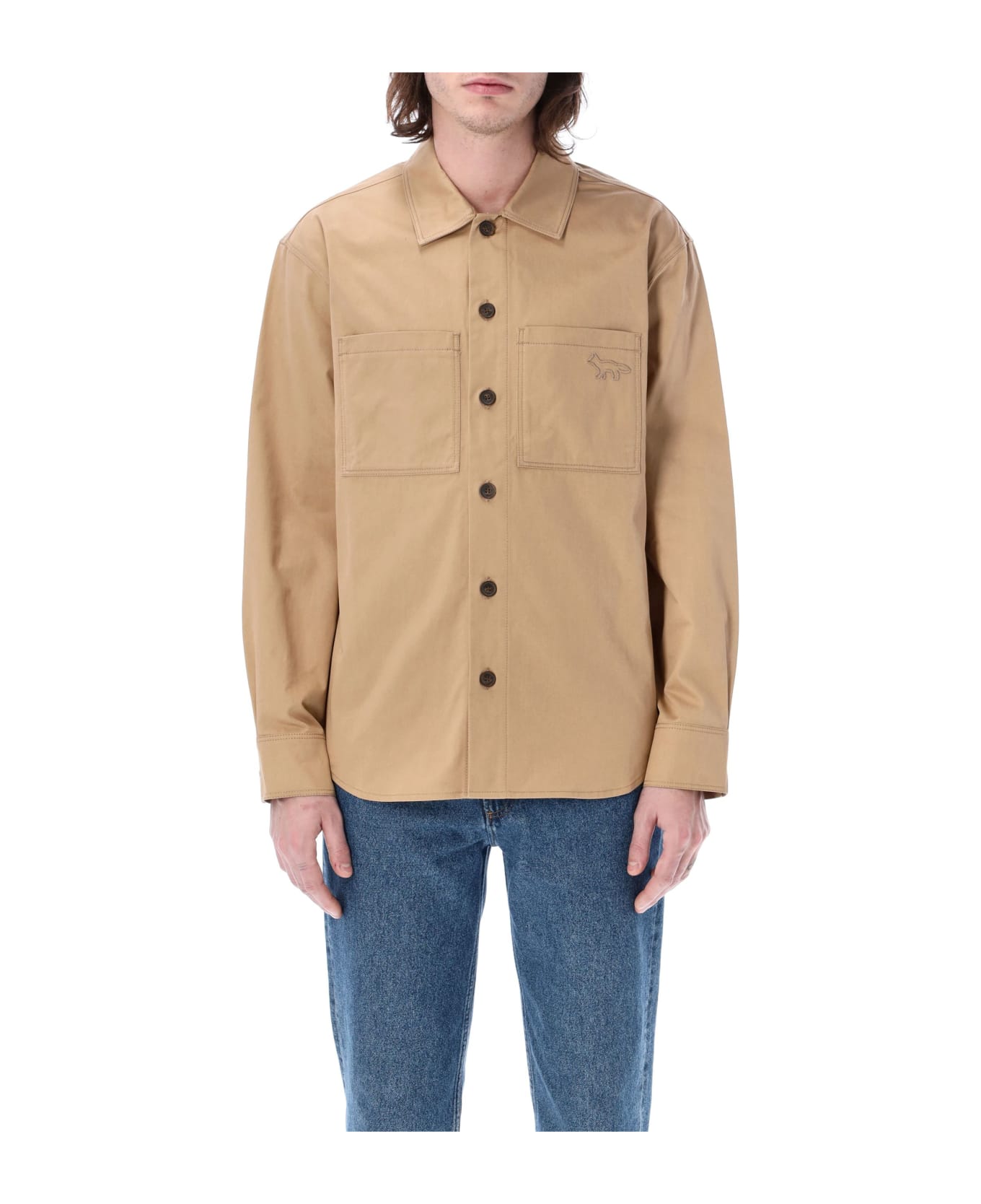 Cotton Snaps Overshirt By Maison Kitsuné. Featuring: Pointed Collar Chest Patch Pockets With Embroidered Profile Fox Buttons Closure Button Cuffs Classic Cut The Model Is 1,90 M Tall And He's Wearing Size L
