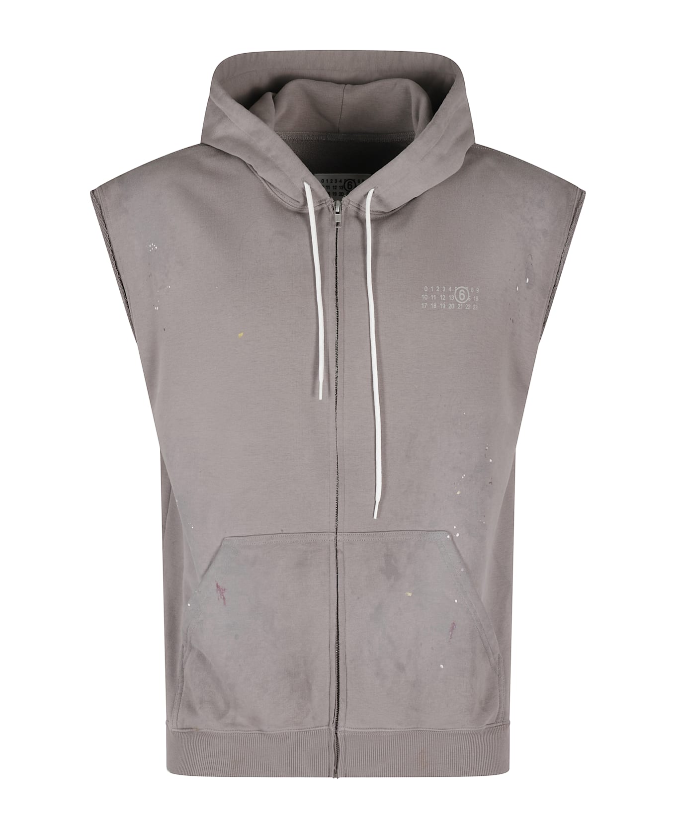 Vest - MM6 Maison Margiela - Gray color - Sweat jacket model - Sleeveless - Vintage effect - Hood - Double front pocket - Front zipper closure