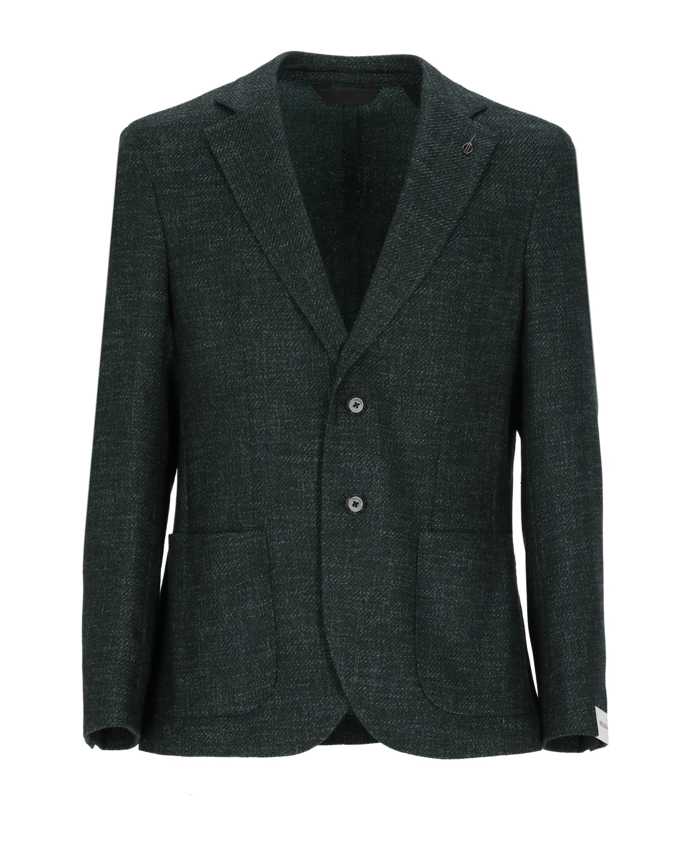 - Green Paoloni virgin wool and silk jacket for man - Peak lapel collar with iconic pin - Long sleeves with buttons at hem - Chest pocket - Two front welt pockets - Front buttons fastening