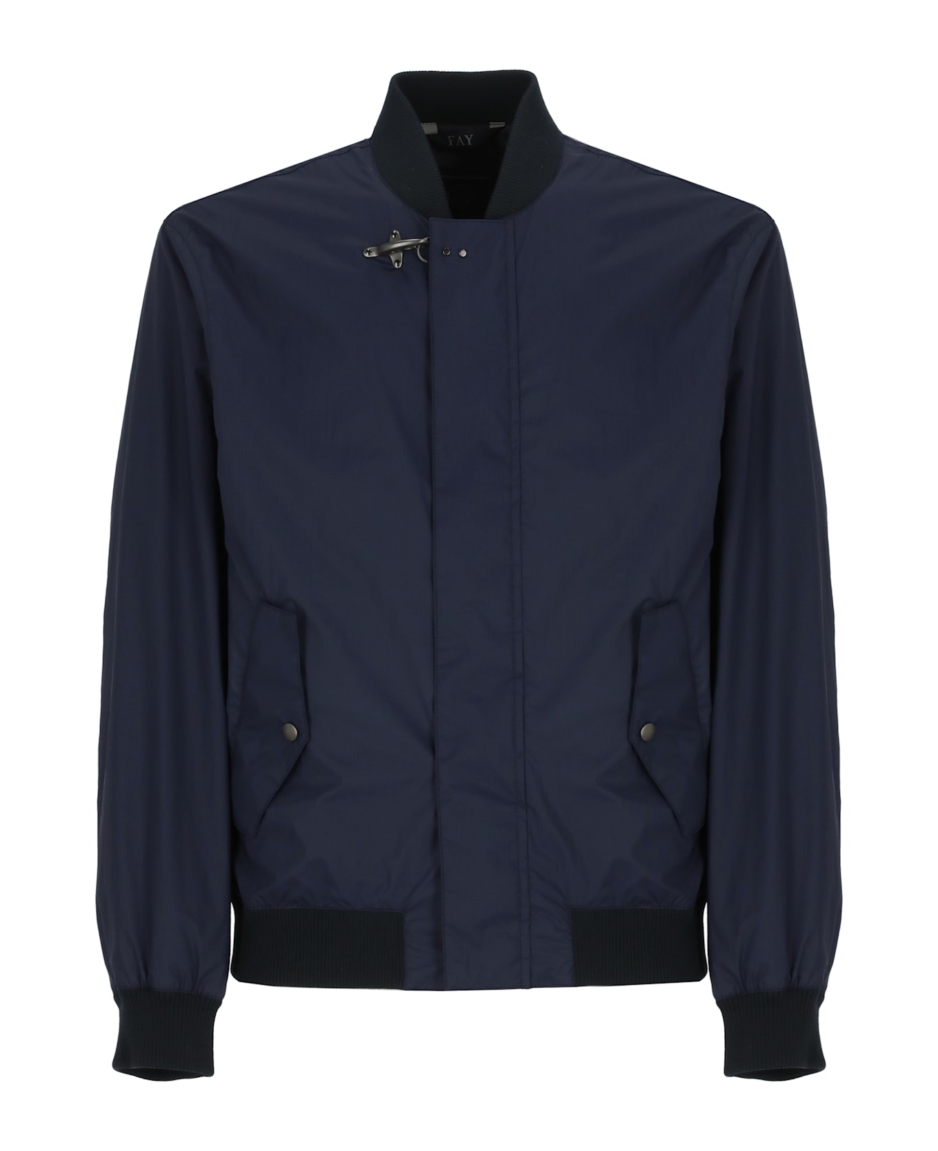 - BlueFay bomber for man - Round neckline - Long sleeves - Two front flap pockets - Front zip, buttons and iconic hood fastening - Elastic ribbed trims