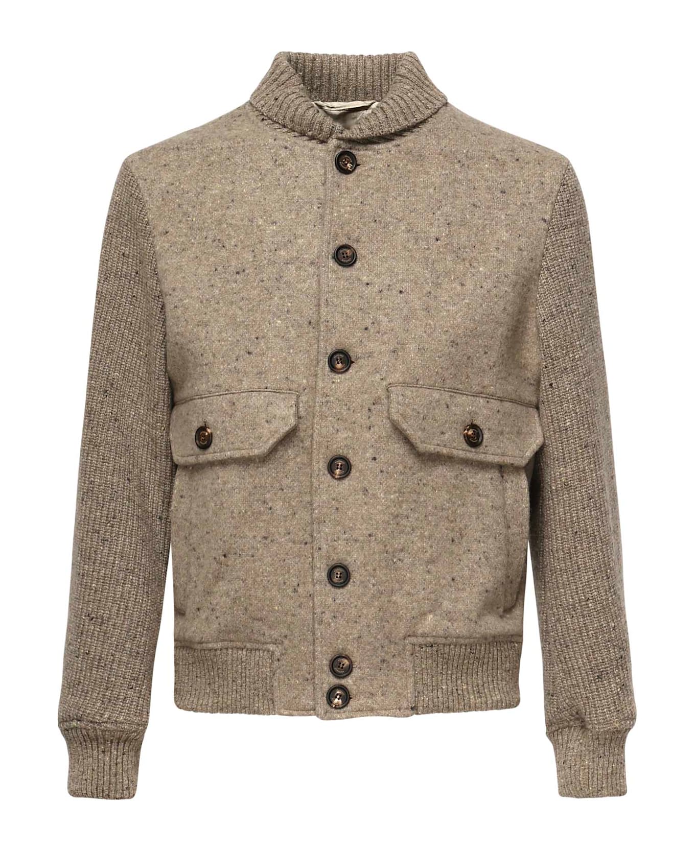 - Front closure with hidden buttons - Long sleeves - Ribbed cuffs - Regular fit - Made in Italy - Size shown in photo is 50 IT - Color: Taupe