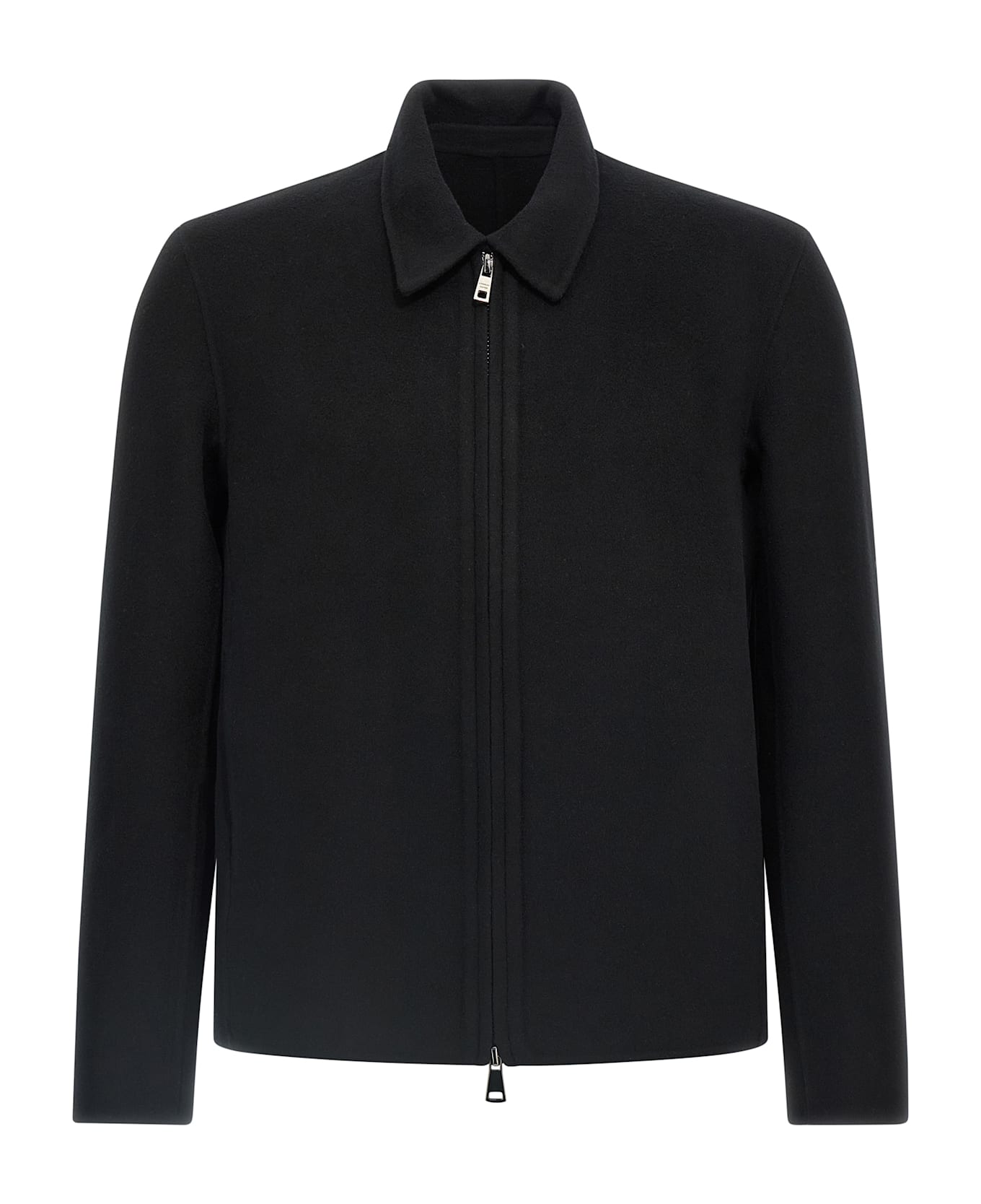 Wool and cashmere blend jacket, unlined, shirt collar, front zip closure, pockets, long sleeves. Composition: 90% wool, 10% cashmere