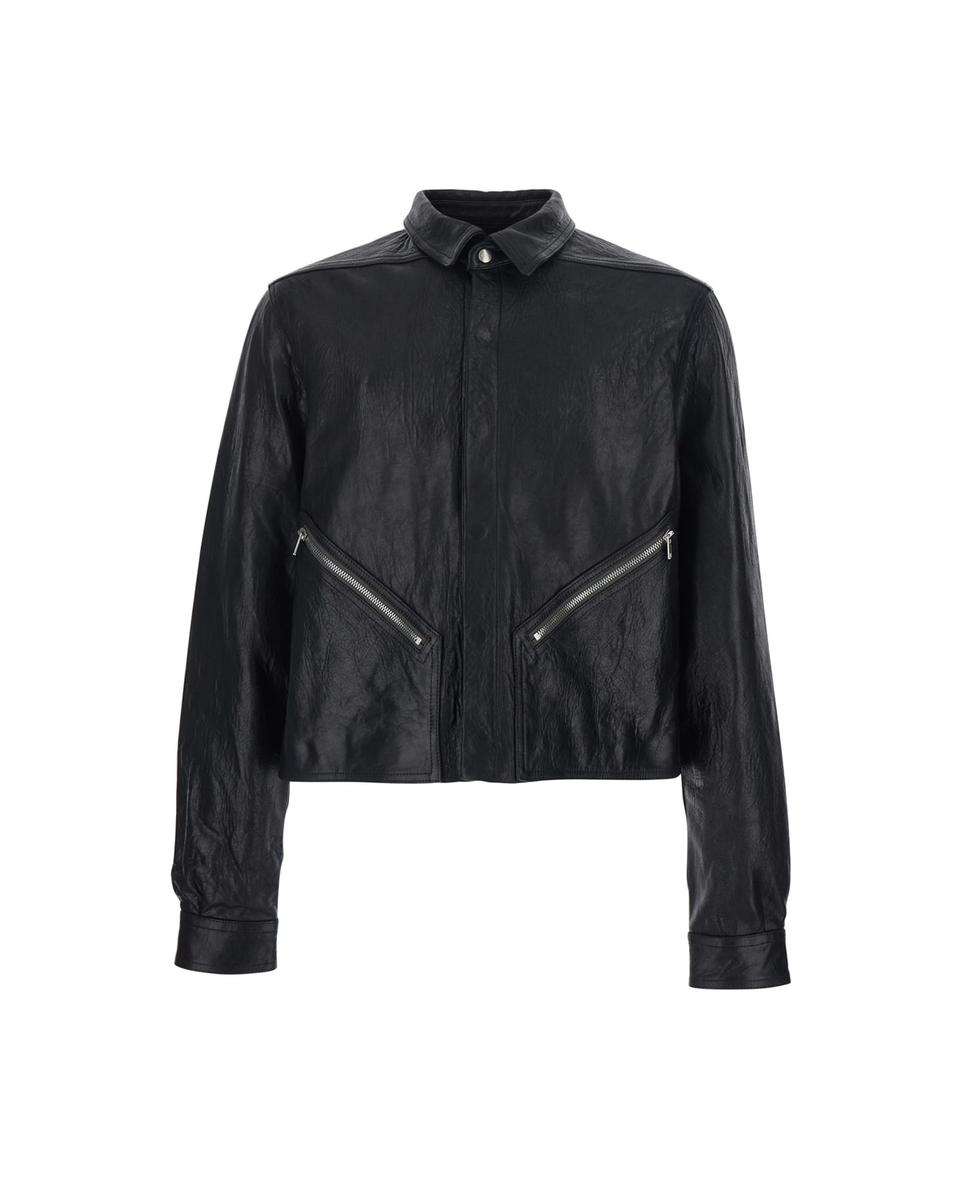 Black Jacket With Classic Lapels And Side Zip Pockets In Leather Man