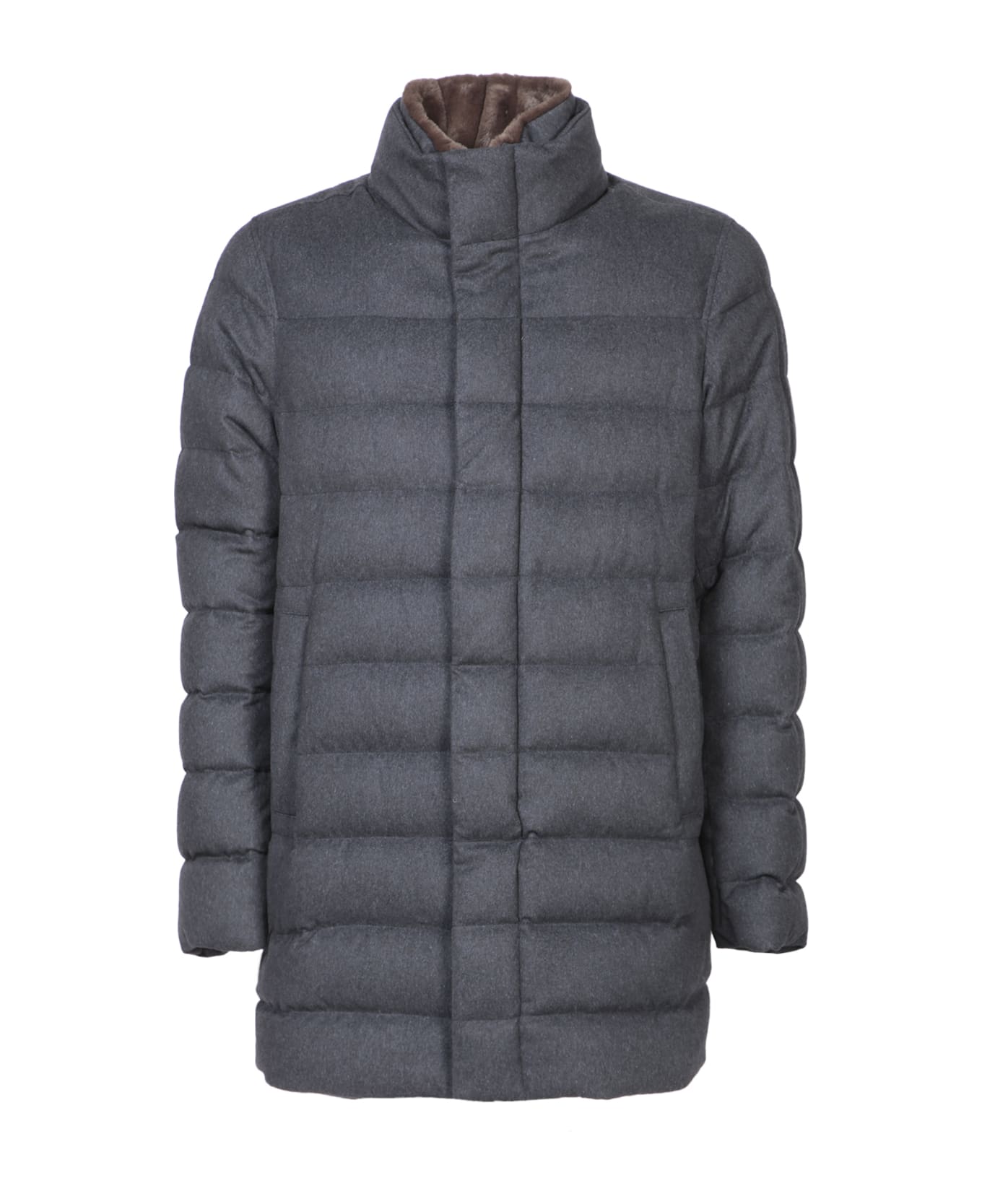 Elegance and comfort merge in this Herno blue cashmere and silk coat, finished with soft internal fur and a modern silhouette. Composition: 51% Silk, 49% Cashmere