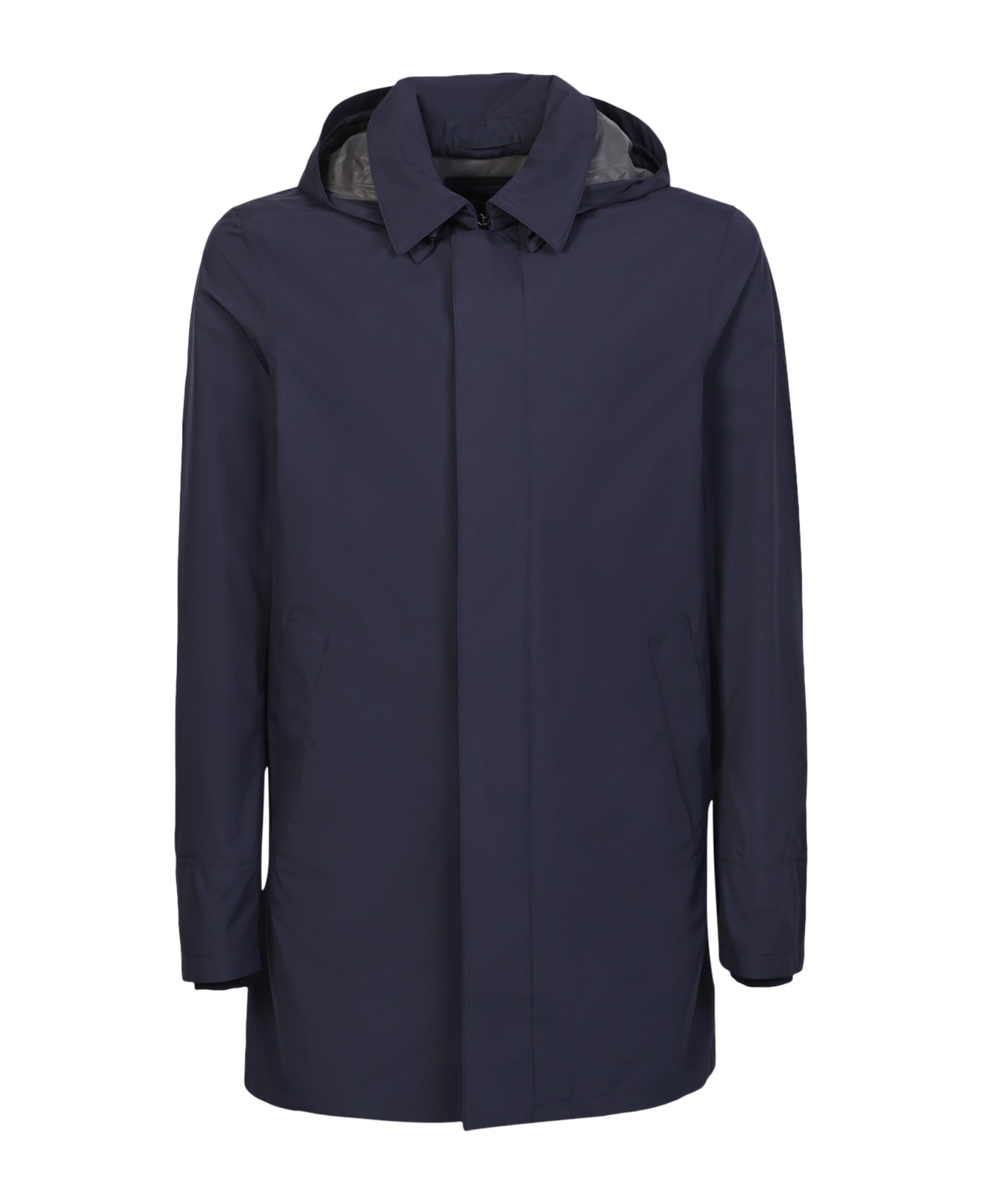 Detachable hood. Front press-stud and zip fastening. Long sleeves. Internal patch pocket. Full lining. Color: Blue