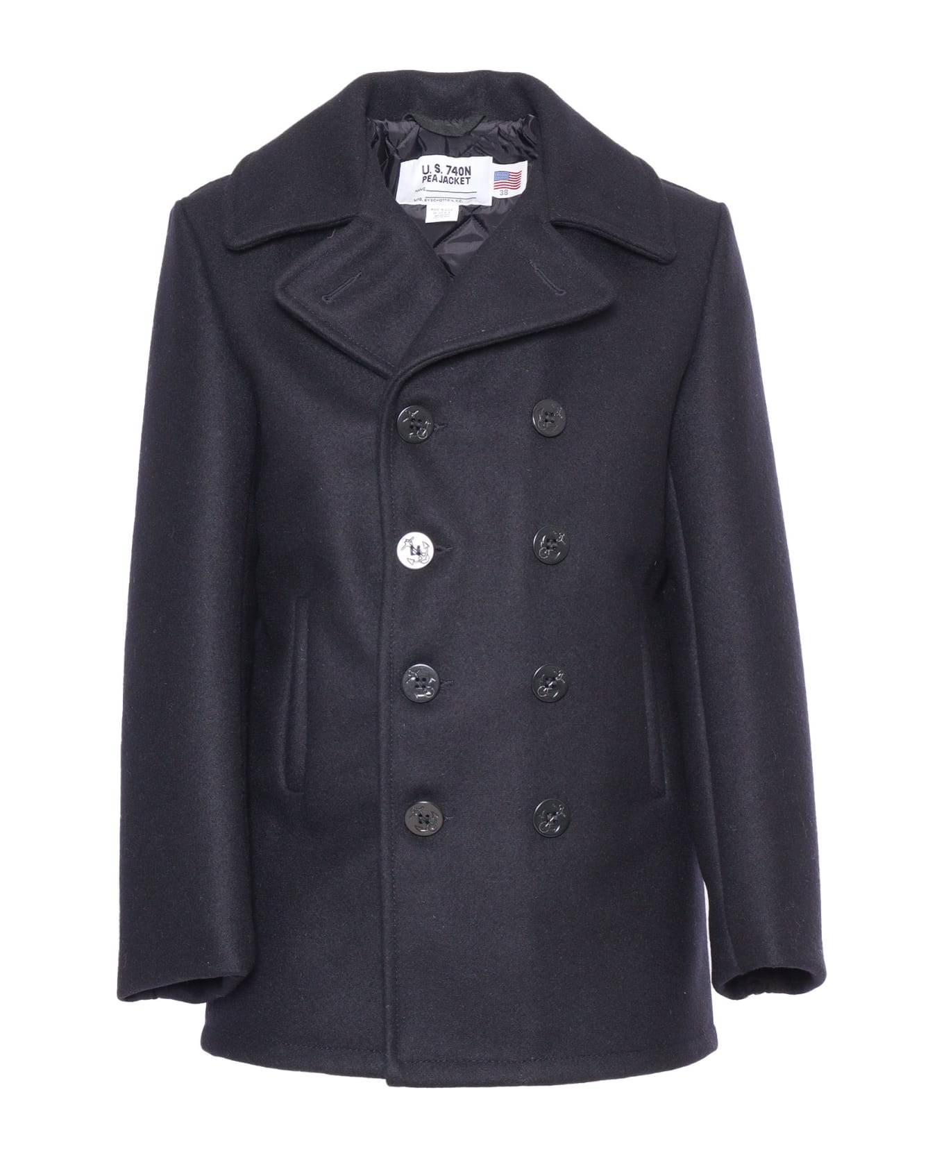 Wool peacoat, double-breasted, lapel collar, welt pockets, synthetic padding, branded buttons