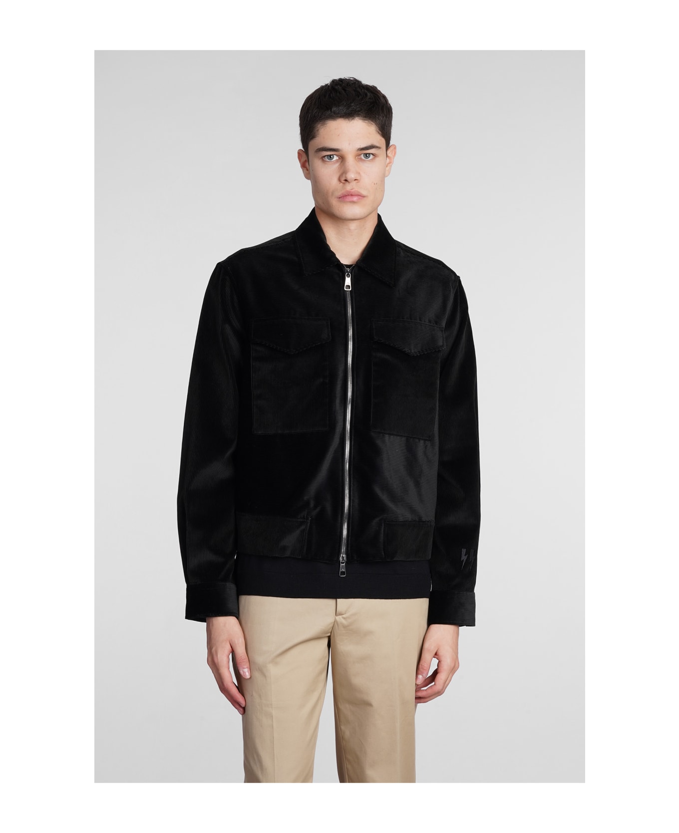 Coat in black wool, collar, long sleeves, flap pockets, zip clousure, embroidery logo, Elastic waist, ribbed knit, 100% cotton, Model is 1. 83 and wears size M