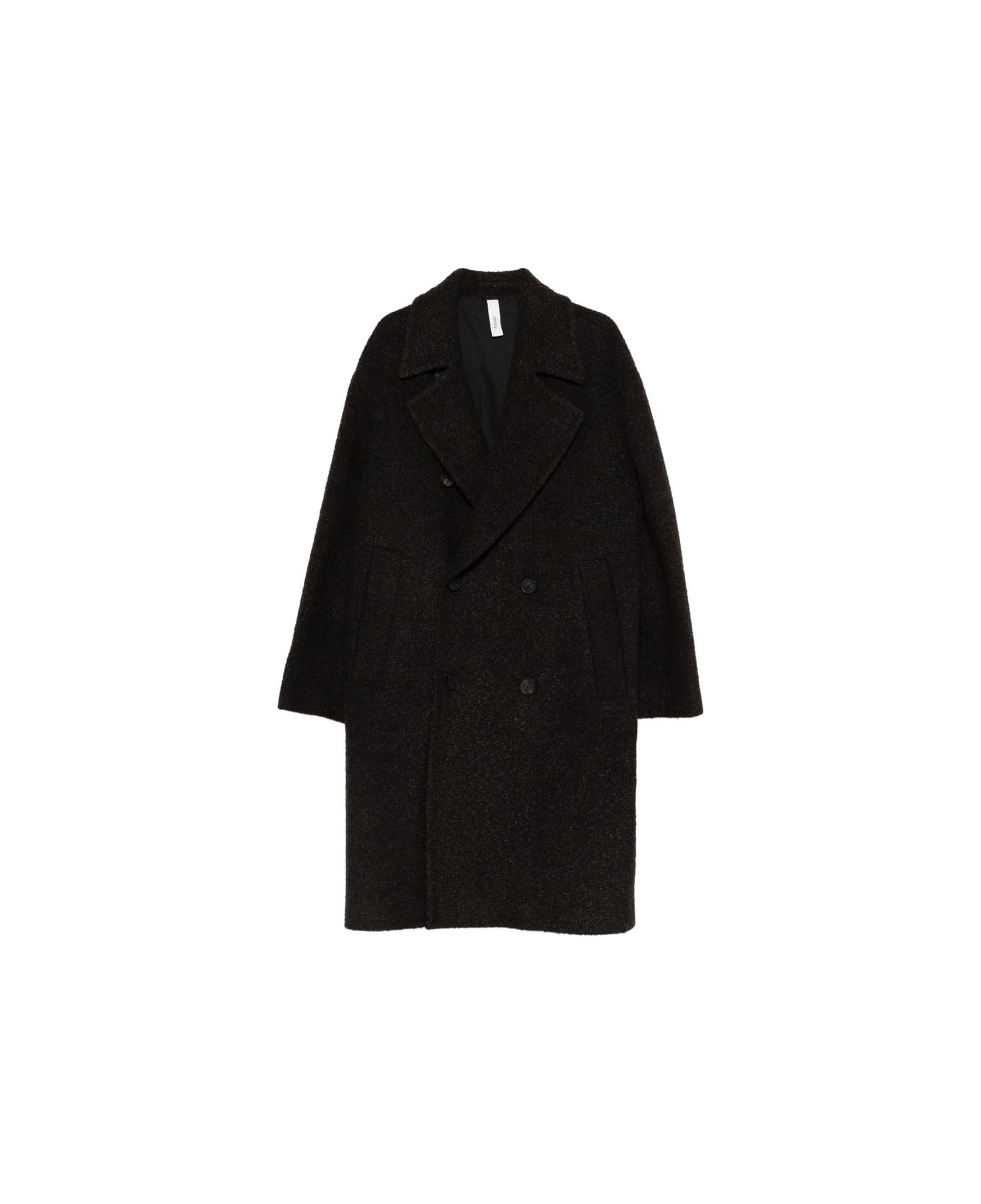 black double-breasted button fastening notched lapels flap pockets long sleeves