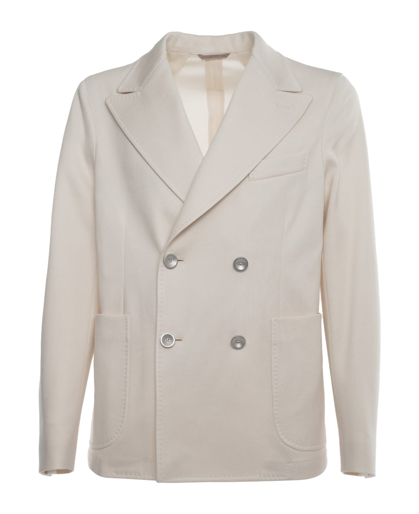 Blazer in cotton blend jersey, double-breasted, patch pockets, breast pocket, lapel collar Composition: 86% COTTON 14% POLYESTER