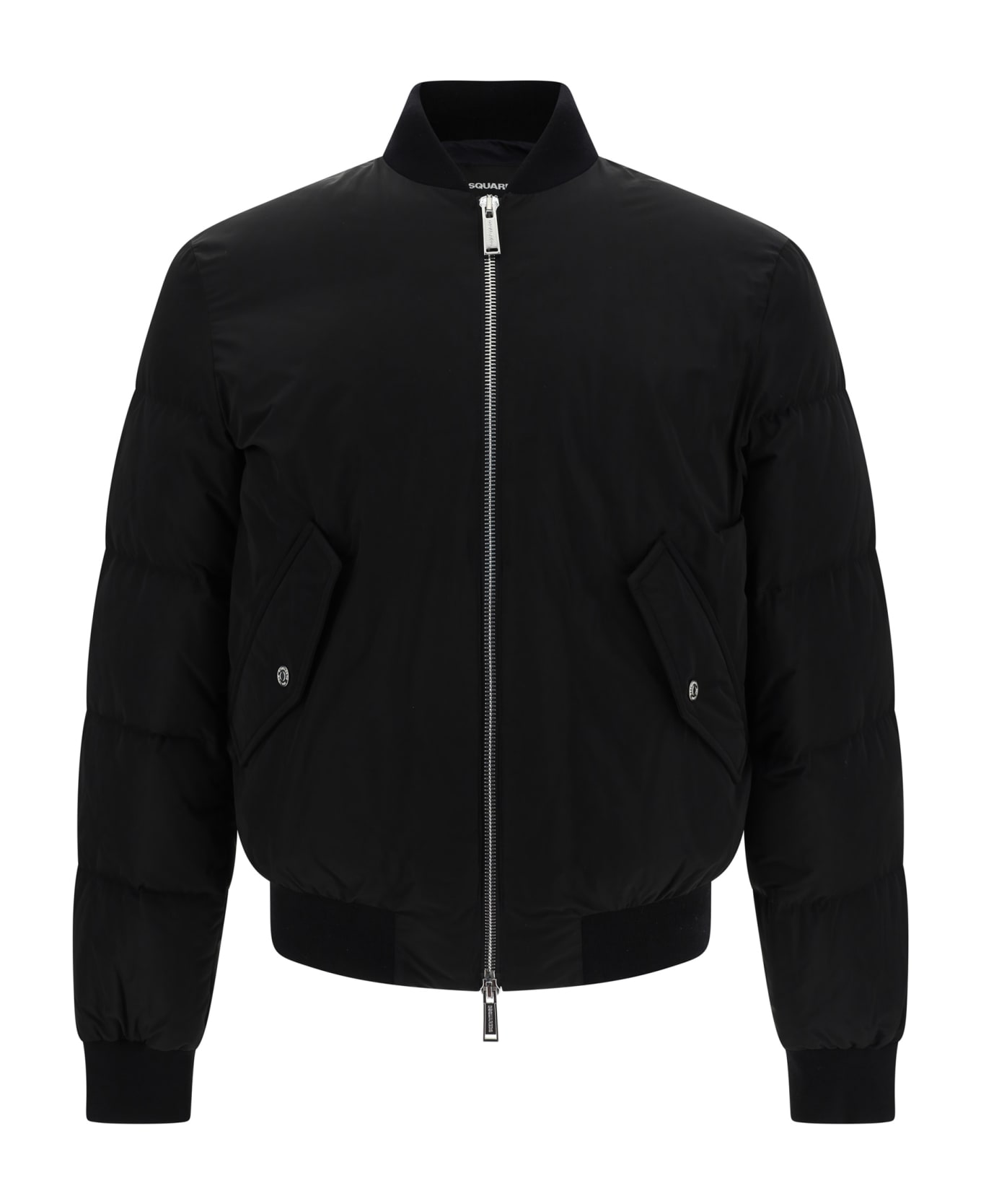 Down jacket by dsquared2, double-slider front zip fastening, a high collar design, two side welt pockets, an all-over quilted and padded design, elasticated ribbed cuffs, a regular fit, and a contrasting iconic brand monogram on the back.