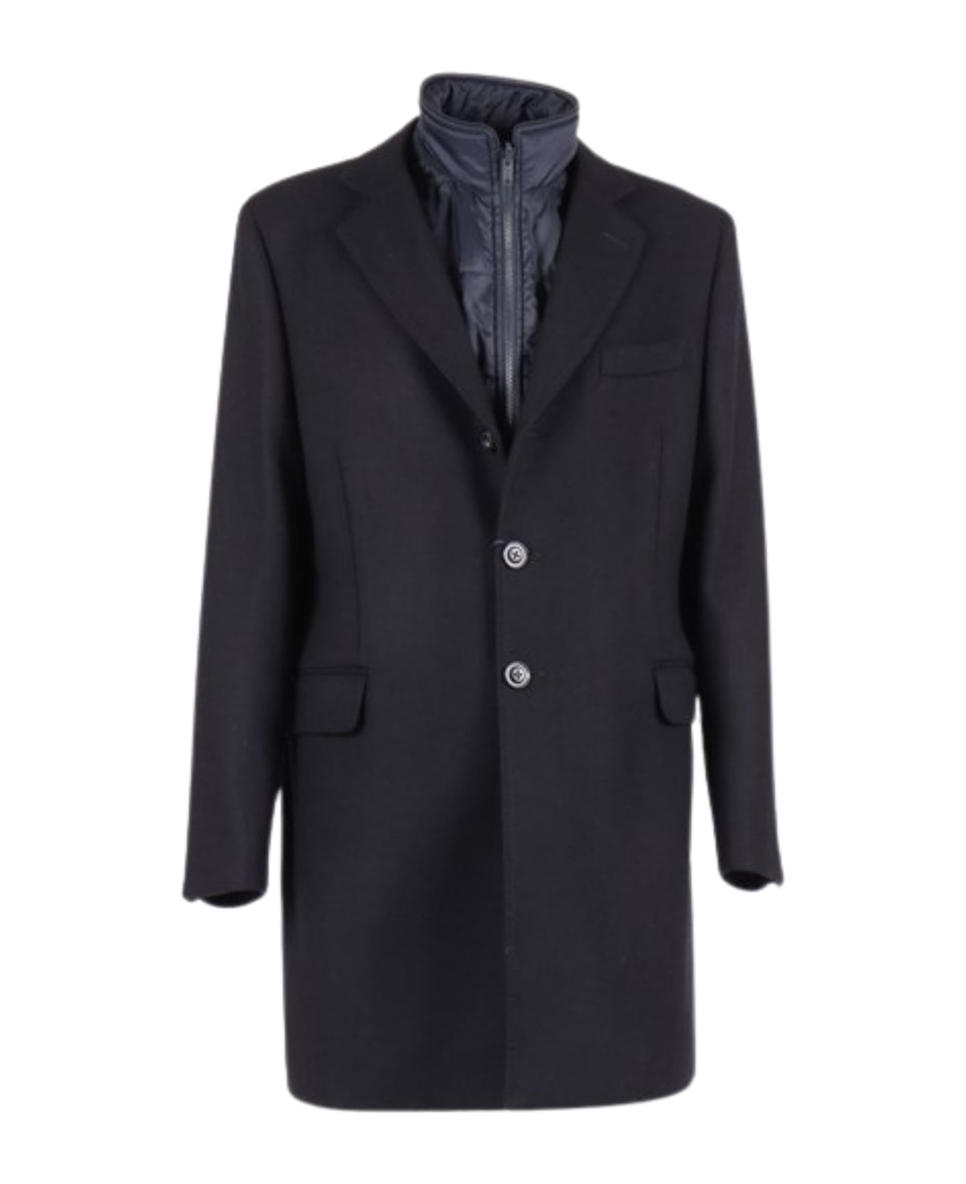 90% WOOL 10% CASHMERE DETACHABLE VEST 100% POLYAMIDE PADDING 100% POLYESTER