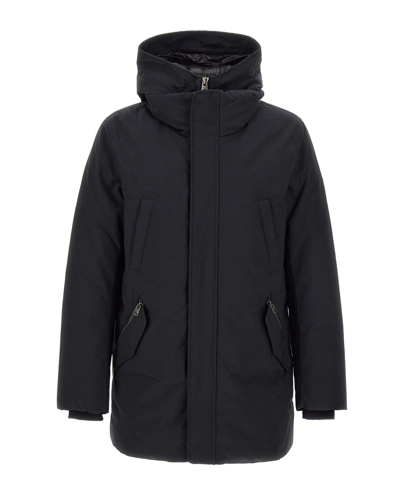 Mackage men's down jacket "Edward-Nfr", black, medium length, 800 fill power, padding with duck down, arctic classification up to -35°C, hood and inner bib removable with zip, two-layer fabric with membrane, four front pockets, tuck-in cuffs, front closure with zip and contrasting fabric profiles, inside pocket, regular fit (designed for be worn with heavier layers).