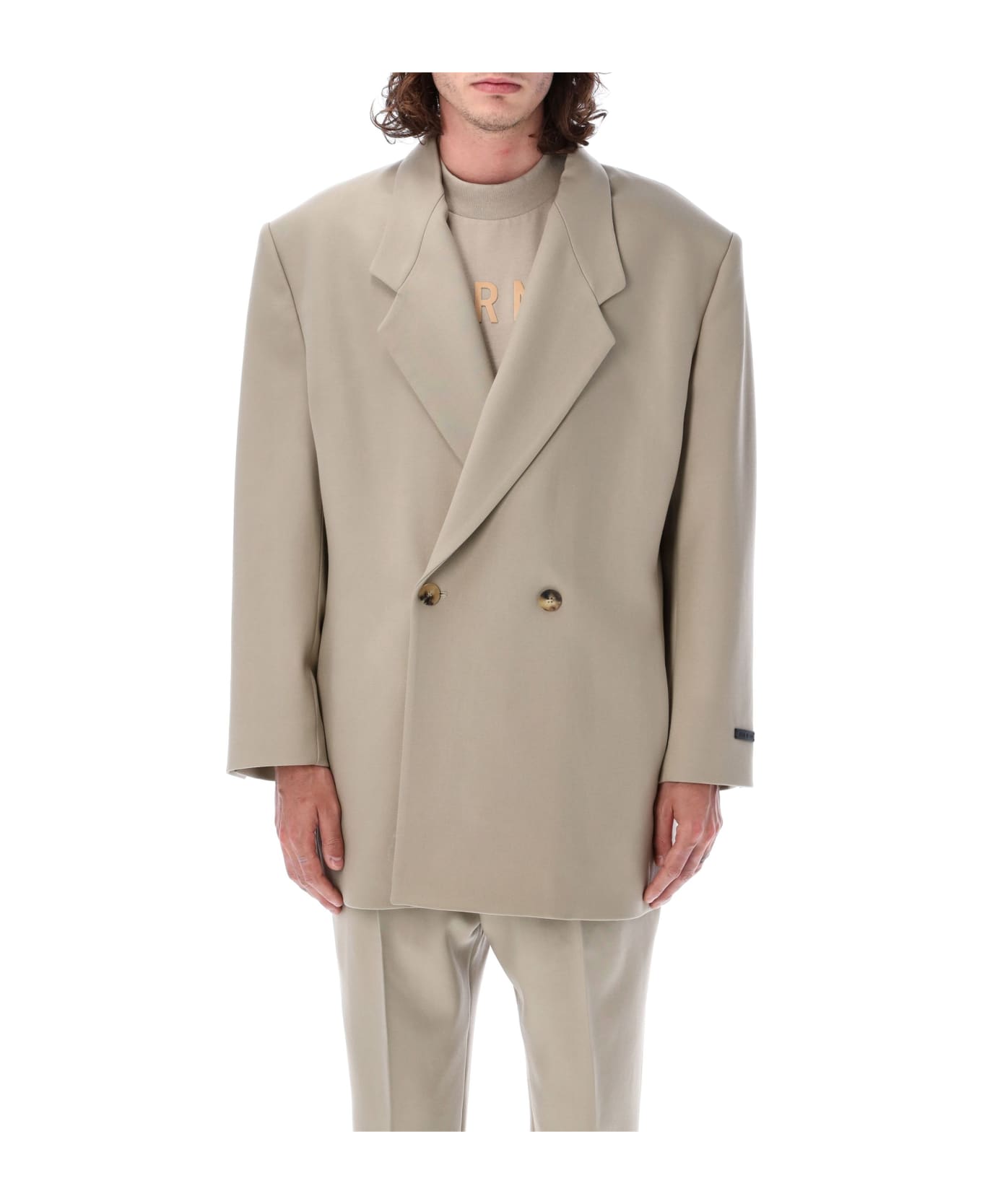 Eternal Wool California Blazer By Fear Of God. Featuring: Oversize Fit Notch Lapel Padded Shoulder Double-breast Button Fastening Side Seam Pockets Long Sleeves With Hidden Button Lined Model Is 1,90 M Tall And He Is Wearing Size 50