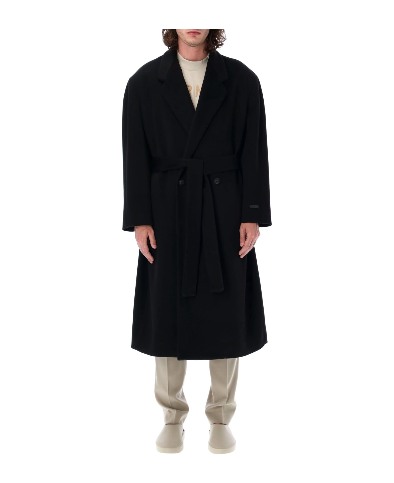 Eternal Wool Overcoat By Fear Of God. Featuring: Notch Lapel Double-breast Belted Waist Seam Pockets Long Sleeves Central Back Vent Model Is 1,90 M Tall And He Is Wearing Size 50