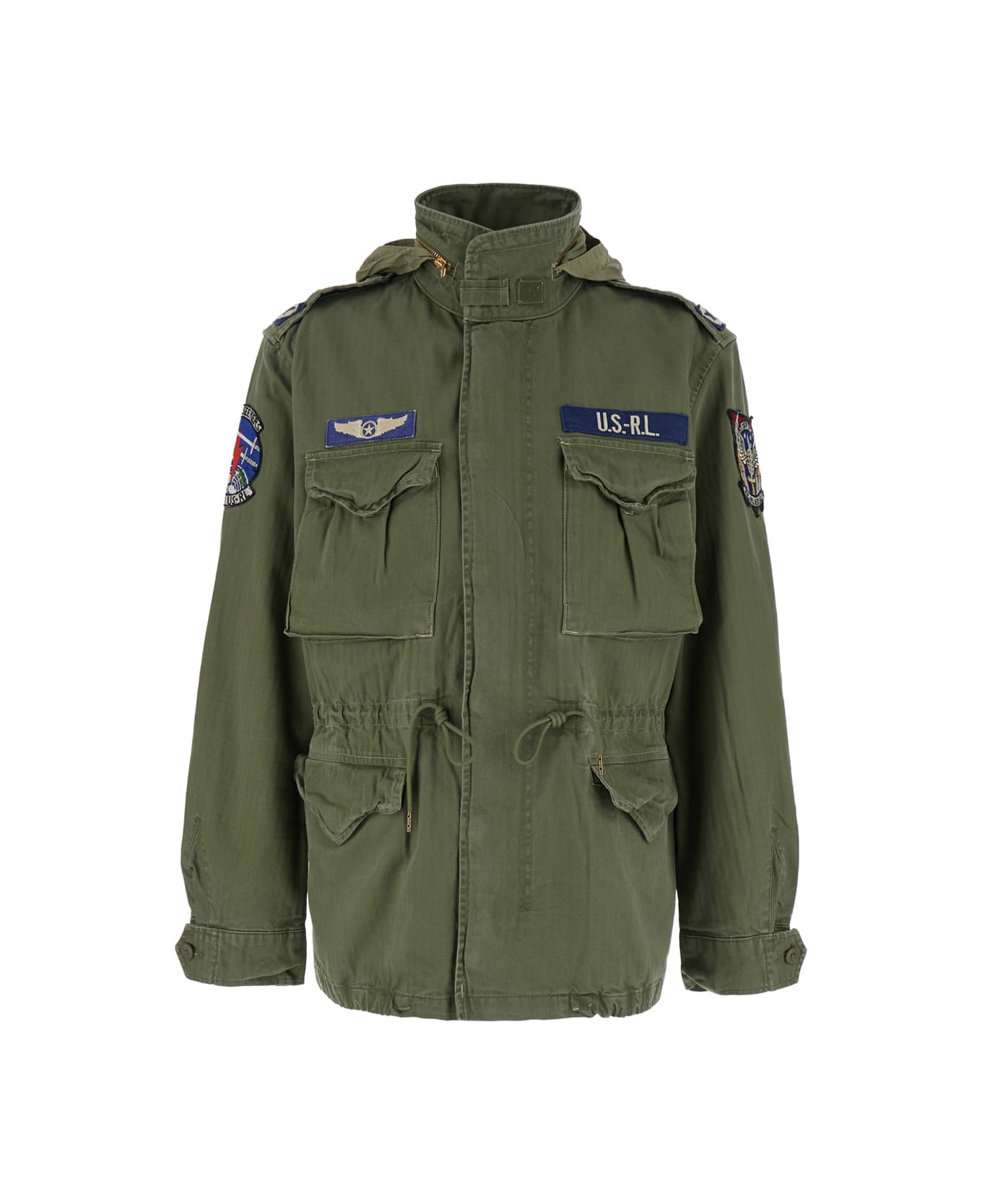 Jacket Green Hood High neck Epaulettes Long sleeves Front zip and snap button closure Four front flap pockets Patches on front and sleeve Buttoned cuffs Cotton Regular fit