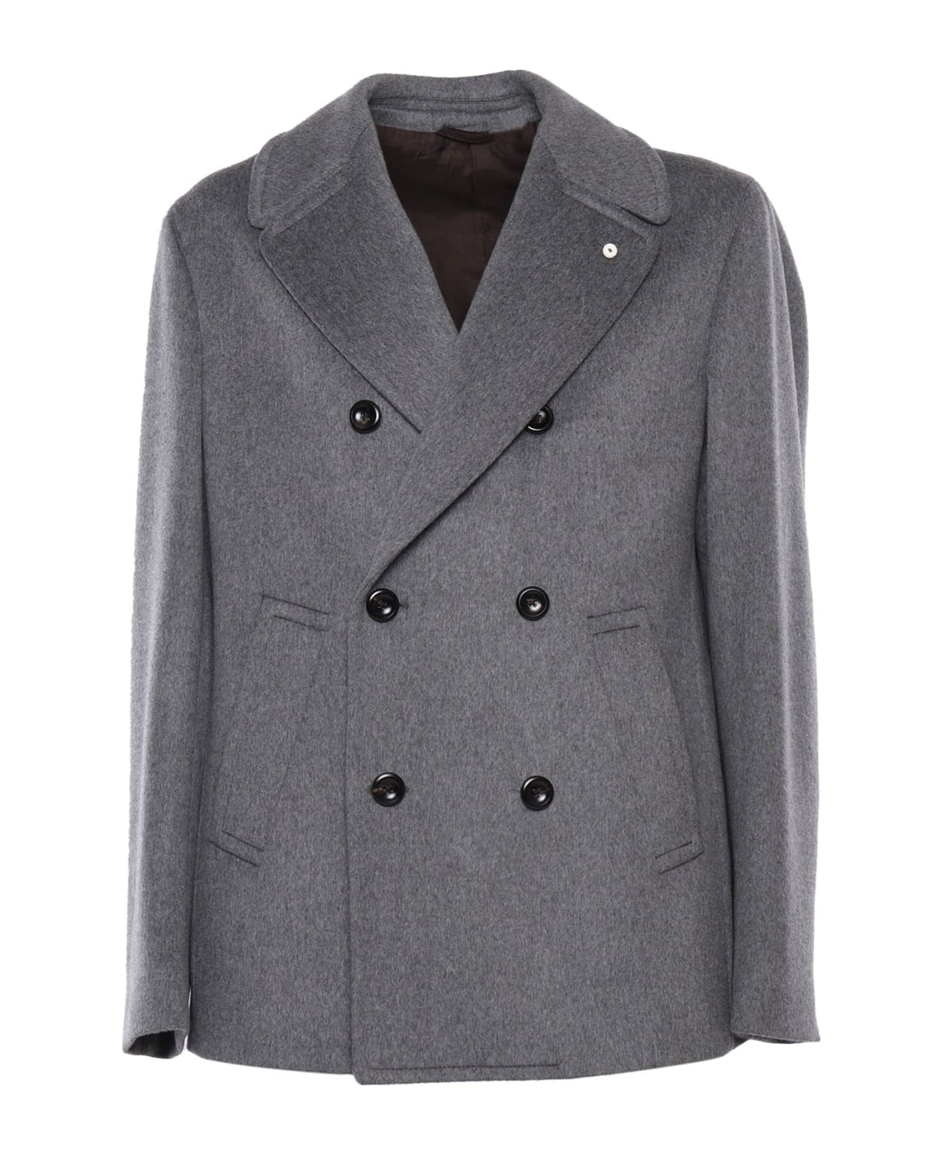 Virgin wool peacoat, side pockets, logo pin on the lapels, internal pockets