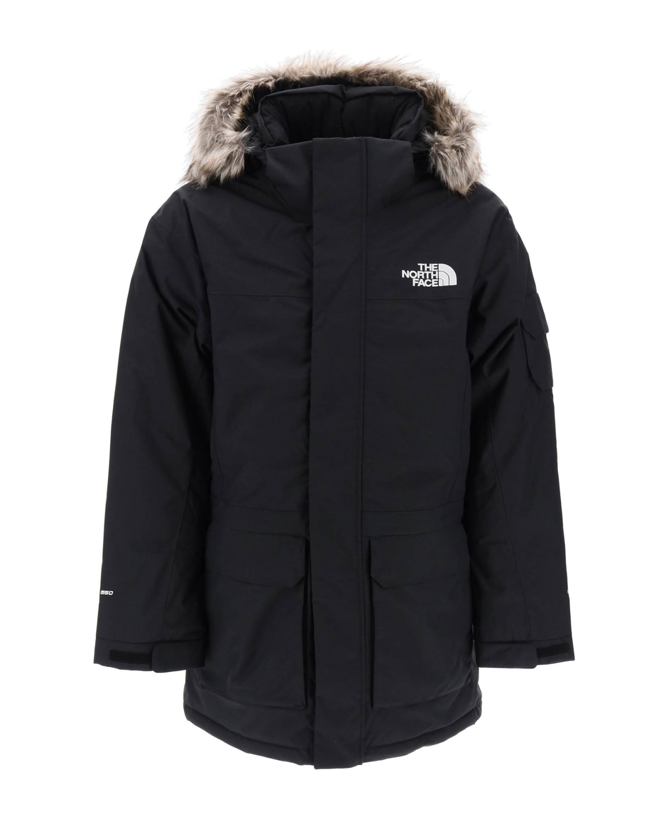 The North Face parka made of water-resistant nylon fabric, padded in resposible-source goose down and feather. It features removable hood with faux fur trimming, concealed zip and snap fastening, and adjustable velcro-tab cuffs. Enriched by side flap pockets with concealed stud, zippered handwarmer pockets and a velcro flap pocket on the sleeve. Decorated with contrasting logo print at chest and on the back. Lining with one internal pocket and regular fit. The model is 187 cm tall and wears a size L.