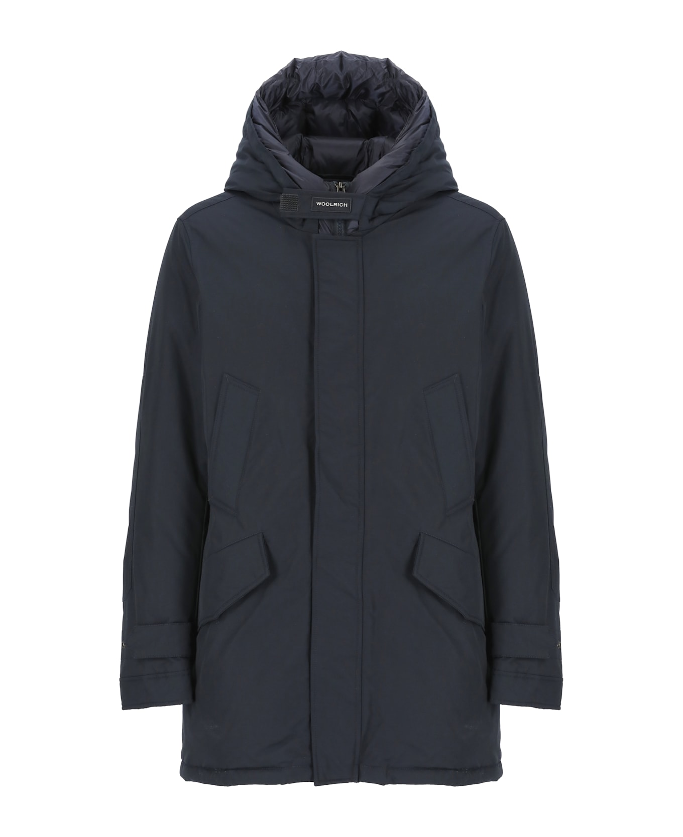 - Blue Woolrich cotton blend parka for man - Hood - Long sleeves - Two front slit pockets - Two front welt pockets with snap buttons - Front zip and buttons fastening
