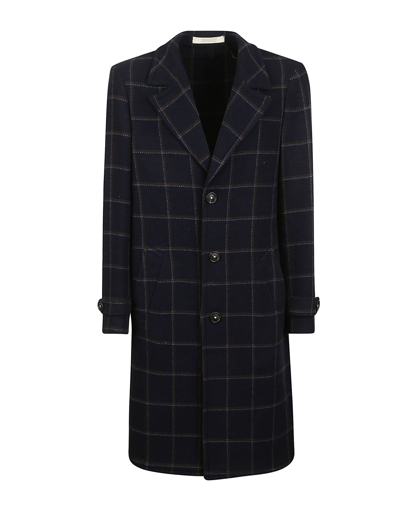 Massimo Alba Blue wool coat, checked pattern, button closure, welt pockets, classic lapels, central slits.